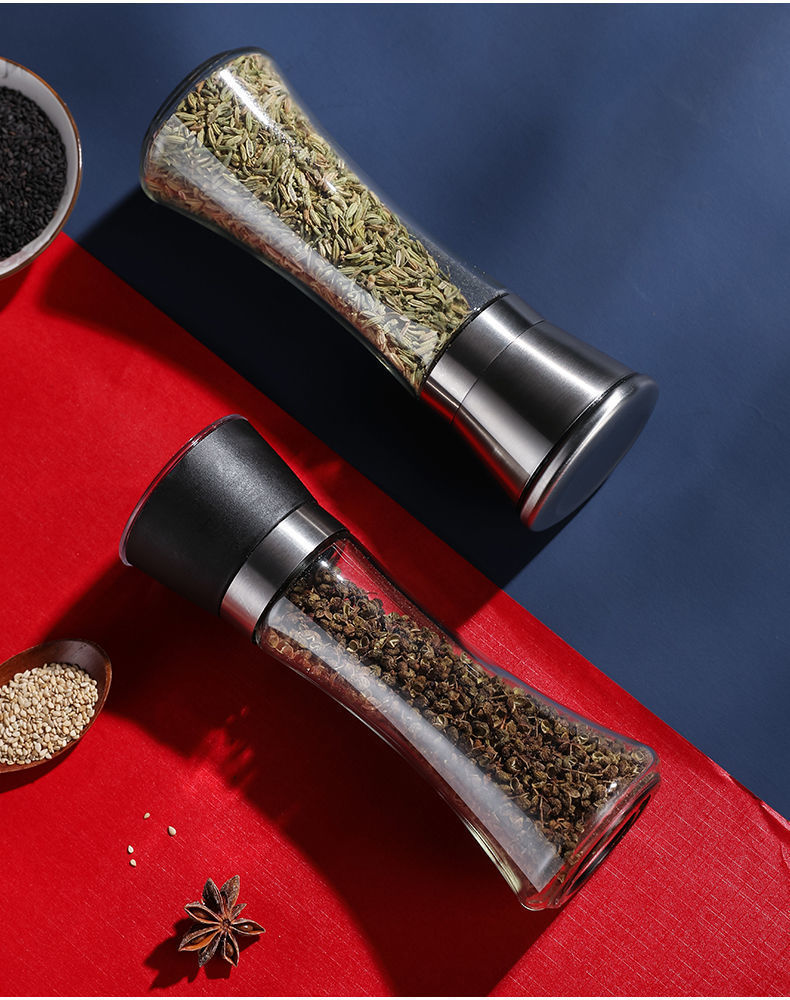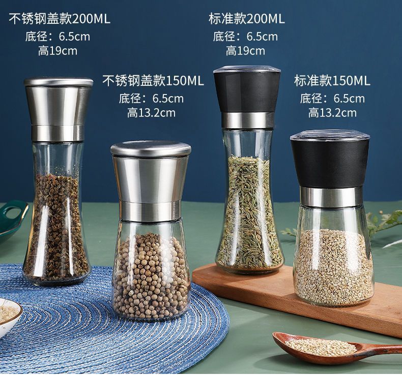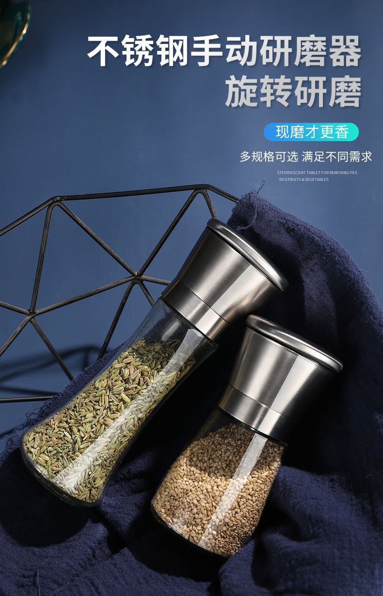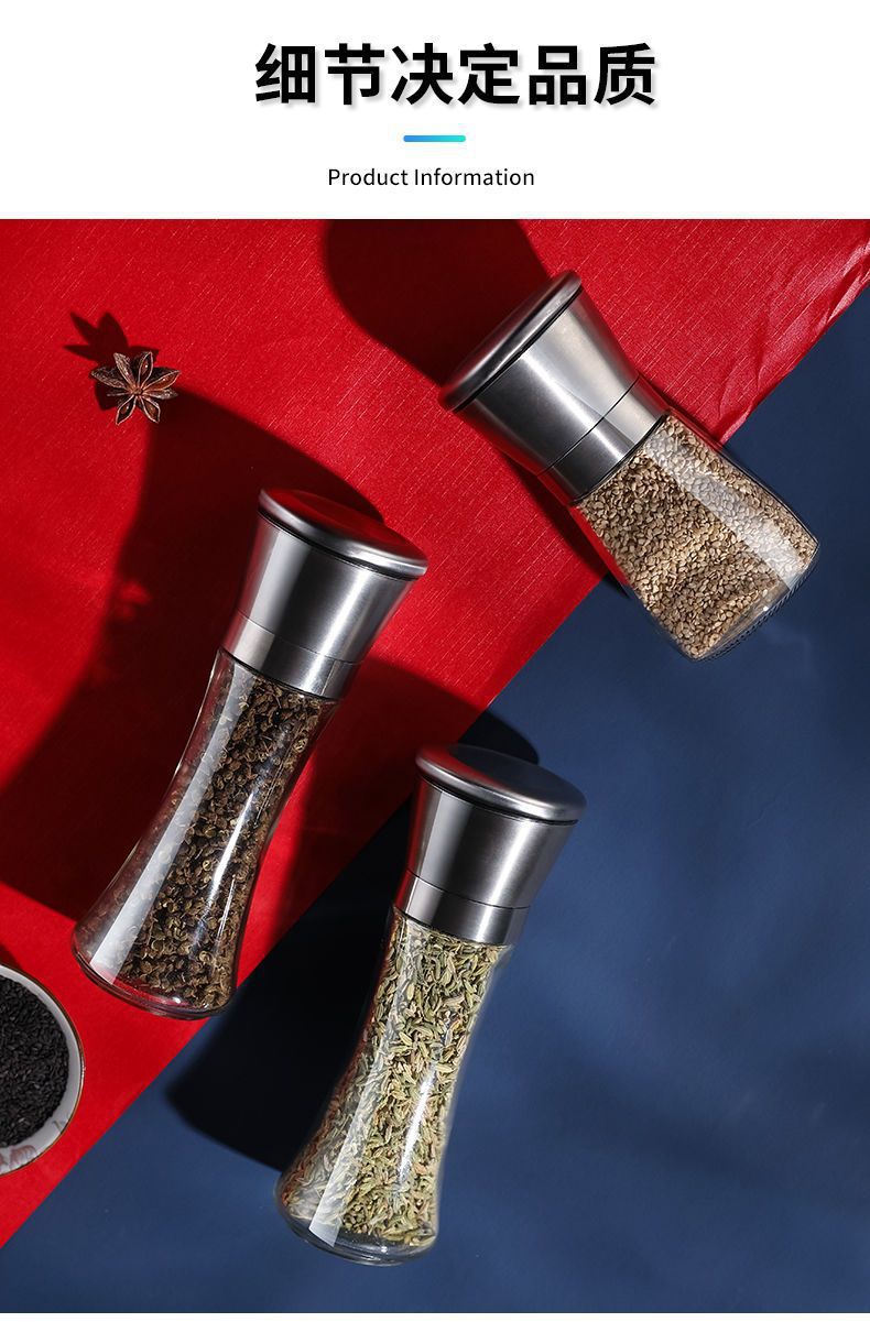 不锈钢研磨器手动玻璃研磨器研磨花椒粉器现磨碎海盐颗粒调料瓶