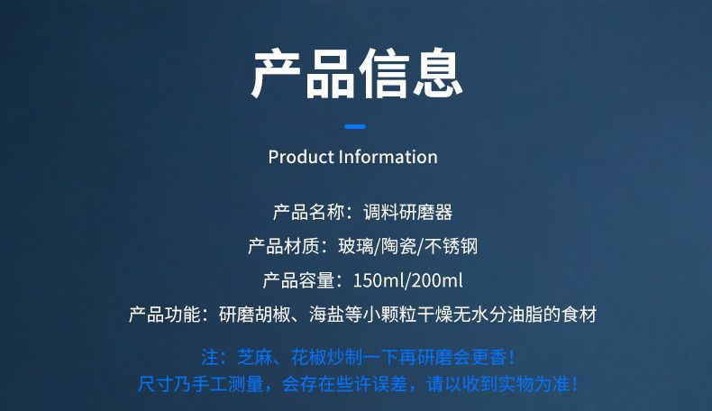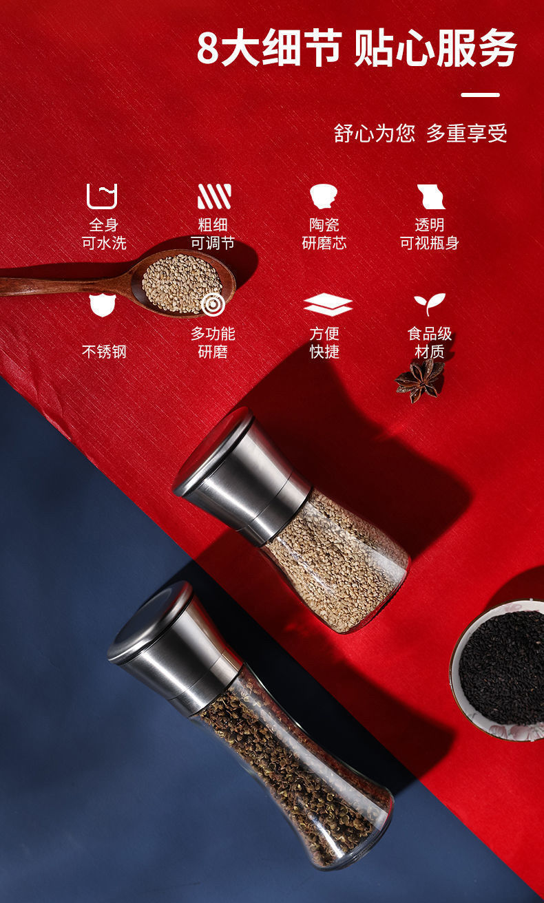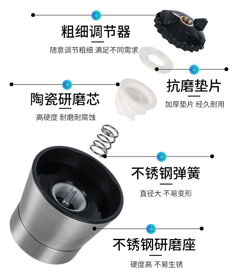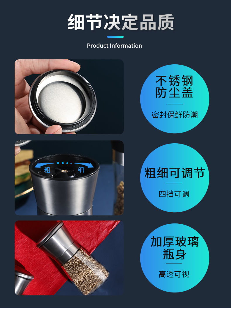 不锈钢研磨器手动玻璃研磨器研磨花椒粉器现磨碎海盐颗粒调料瓶