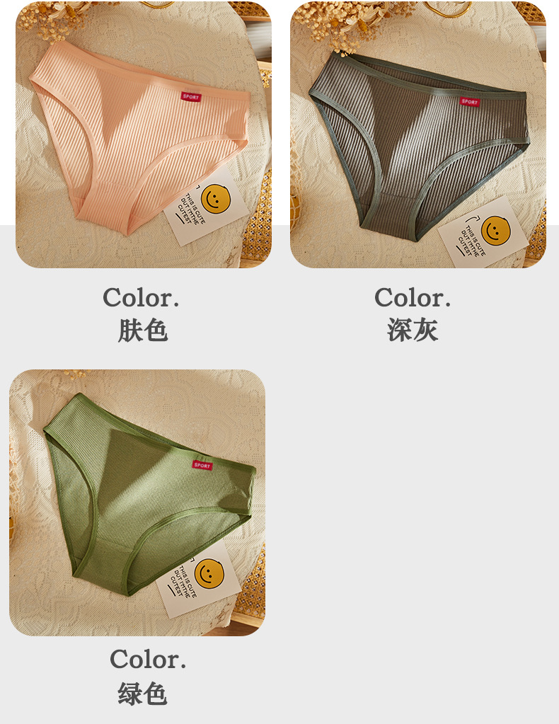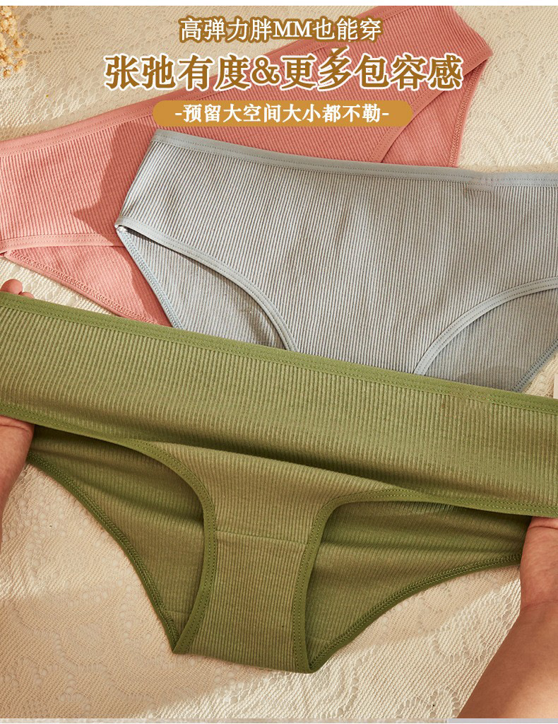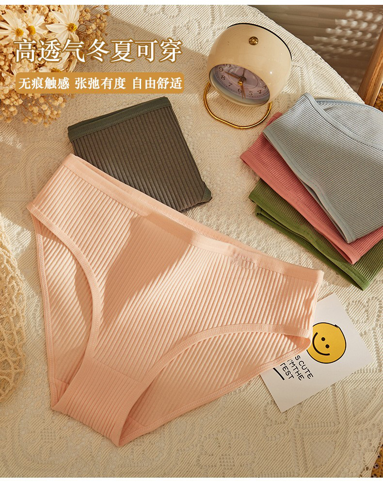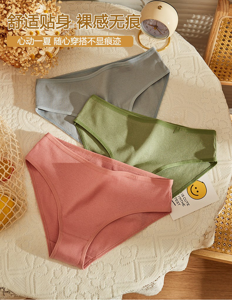 螺纹少女三角裤 日系纯棉裆中腰女士内裤可爱色薄款欧美性感内裤