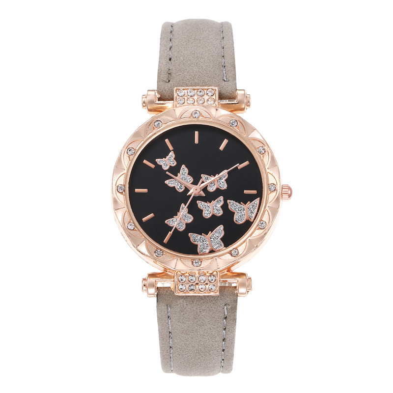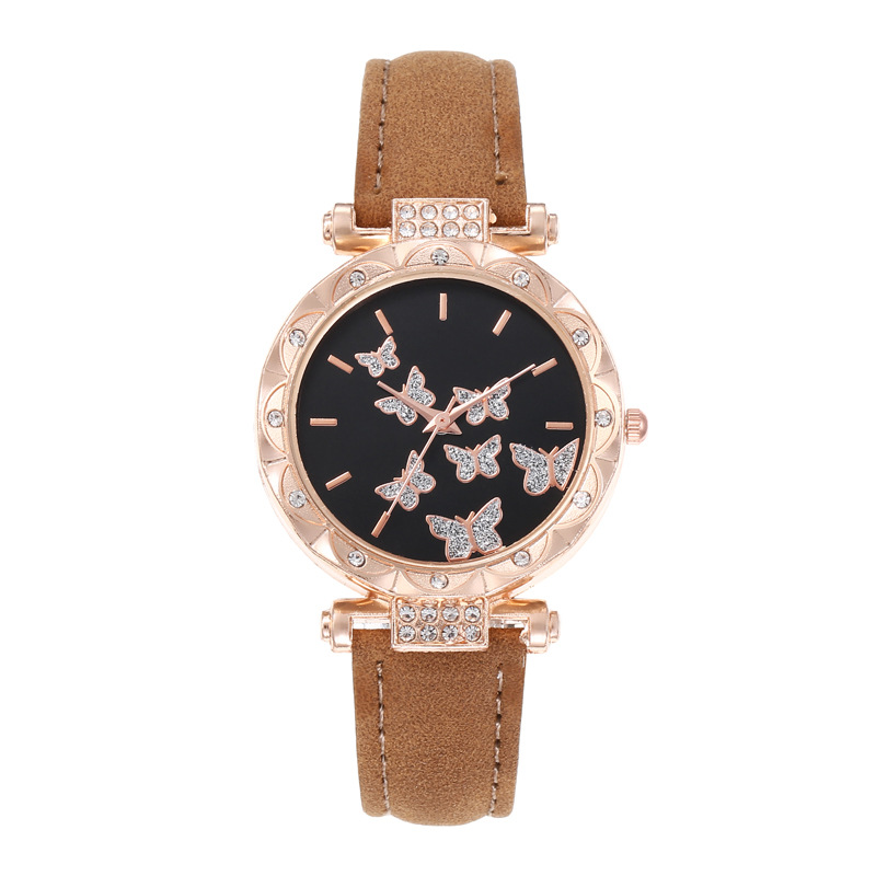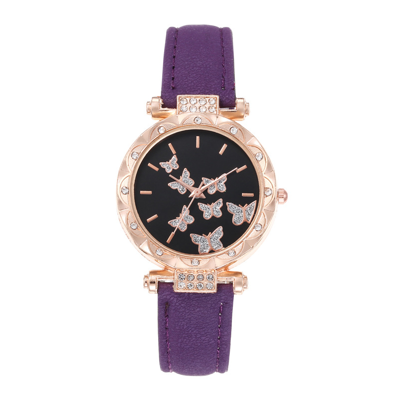 新款抖音爆款女士石英表时尚个性简约腕表蝴蝶数字皮带手表批发