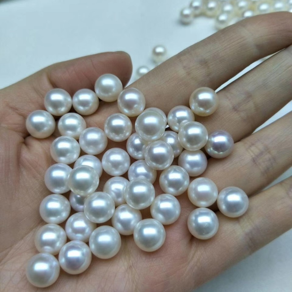 自养白色珍珠颗粒圆润光好半孔AAAA3-13mm好品质淡水圆珍珠按课批
