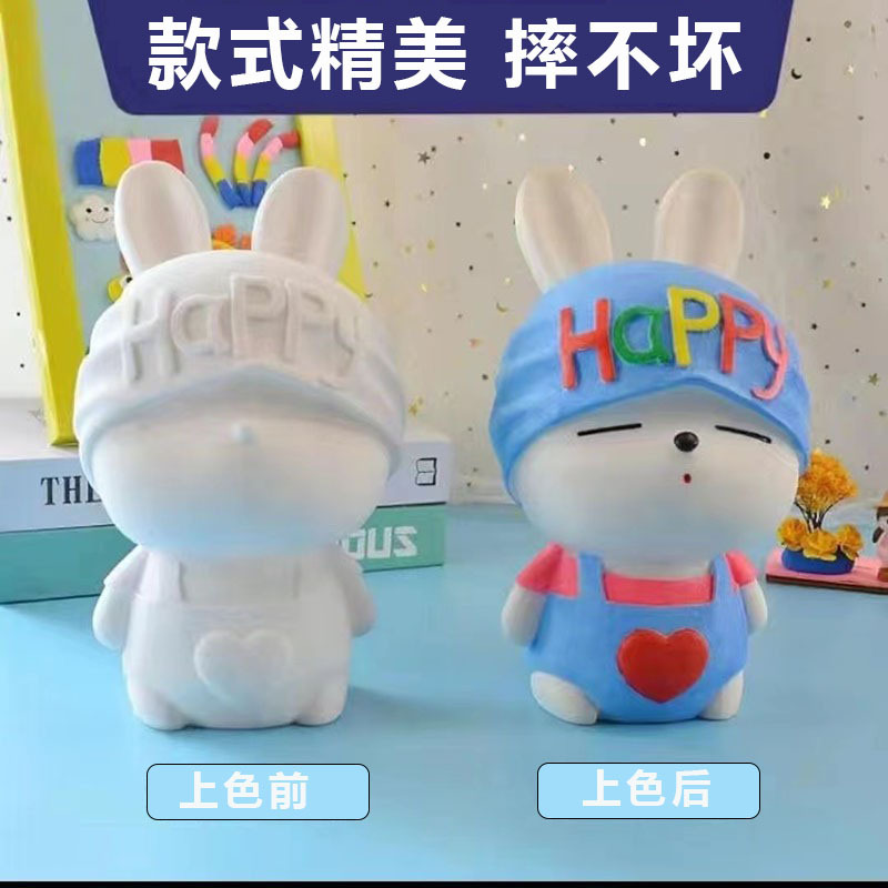 大号搪胶彩绘娃娃涂色白坯套装批发儿童涂鸦存钱罐摆摊夜市礼品物