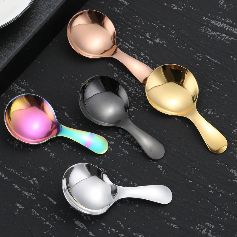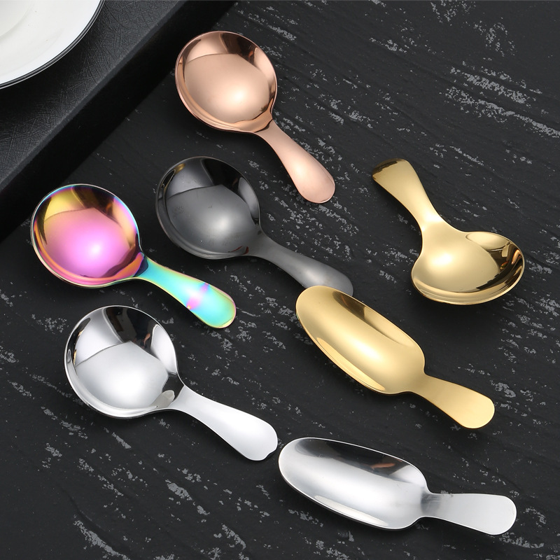 304不锈钢勺子短柄圆头冰淇淋勺儿童小圆勺雪糕甜品勺迷你茶叶勺