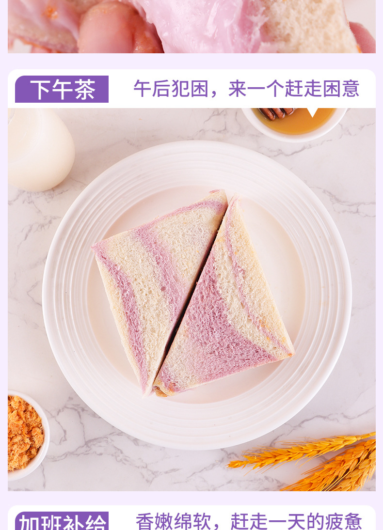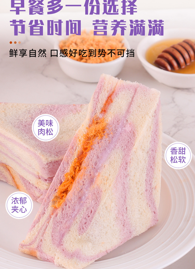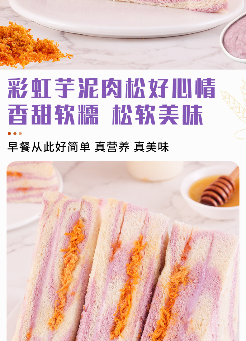 香芋芋泥肉松三明治多口味夹心学生早餐代餐面包独立包装厂家直发