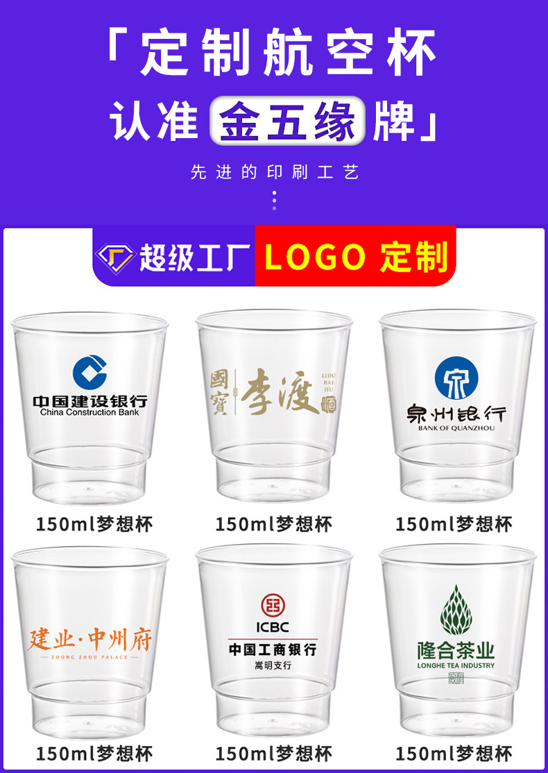 150-200ml梦想杯一次性杯子硬质航空杯透明塑料杯水杯加厚定制
