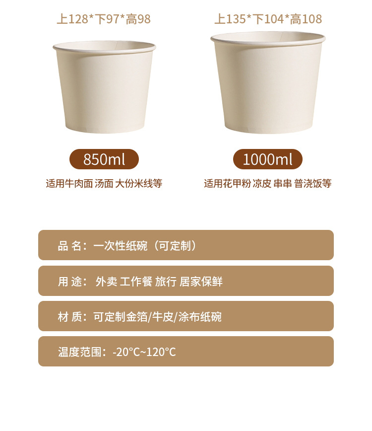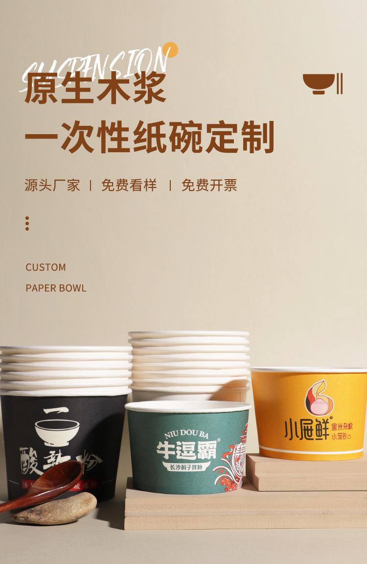 一次性纸碗定制定做logo饭店摆摊拌面拌粉快餐商用加厚纸质打包碗