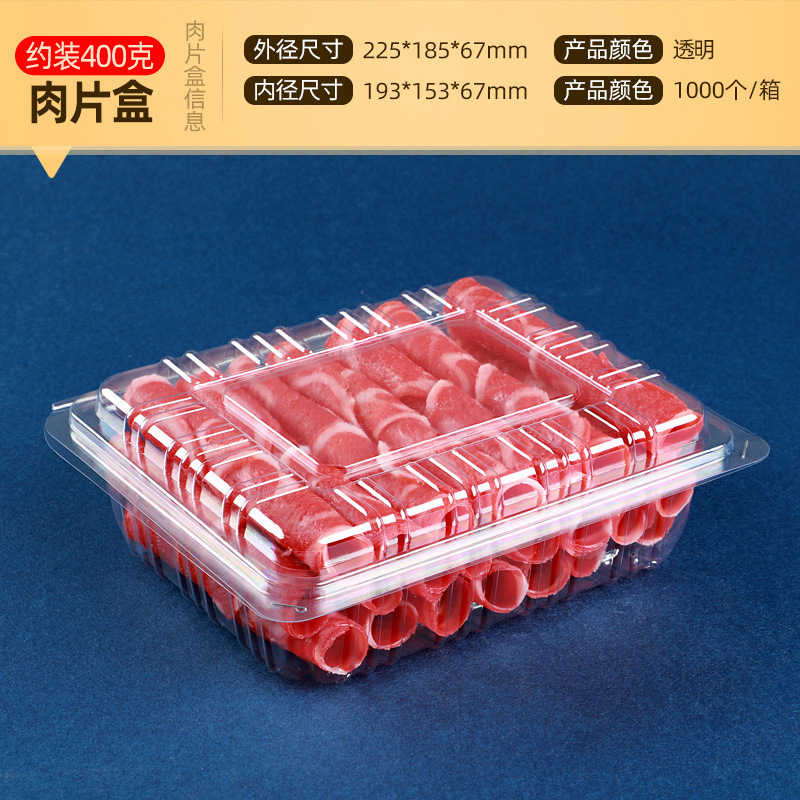 一次性透明肉片盒食品级加厚冷冻保鲜盒牛羊吸塑塑料盒打包盒批发
