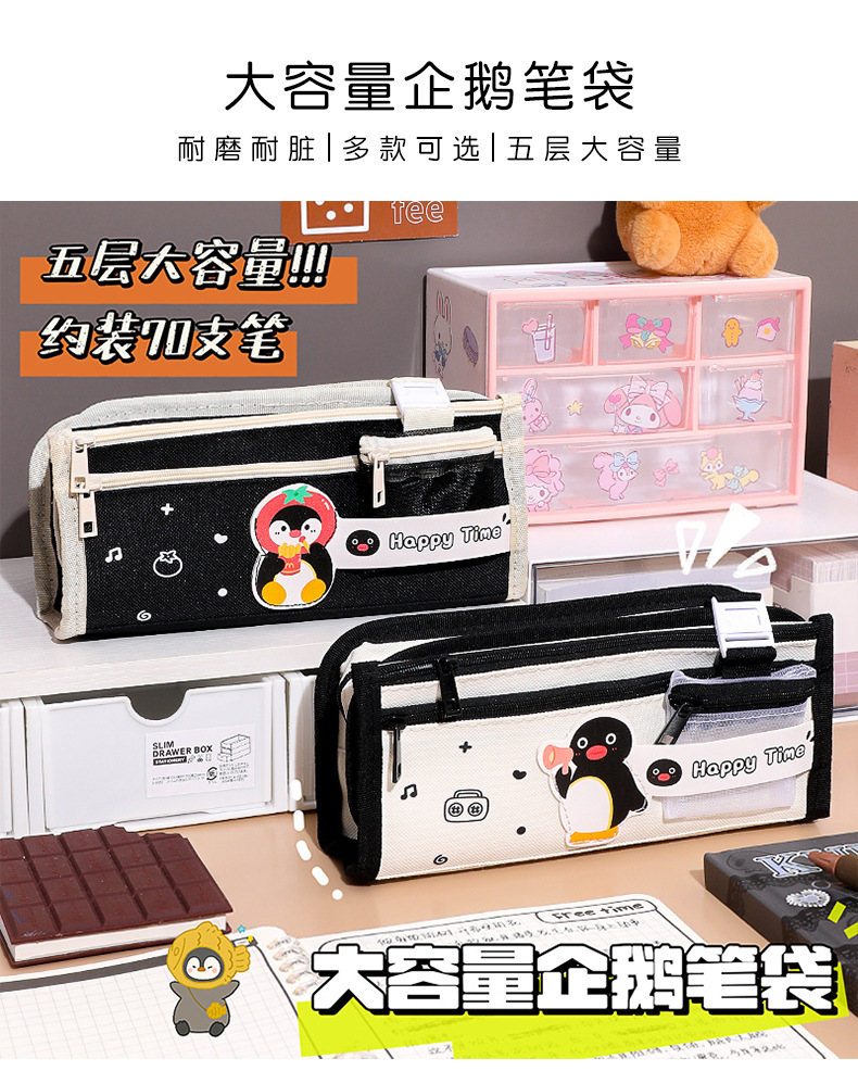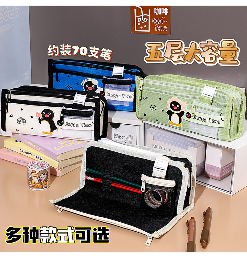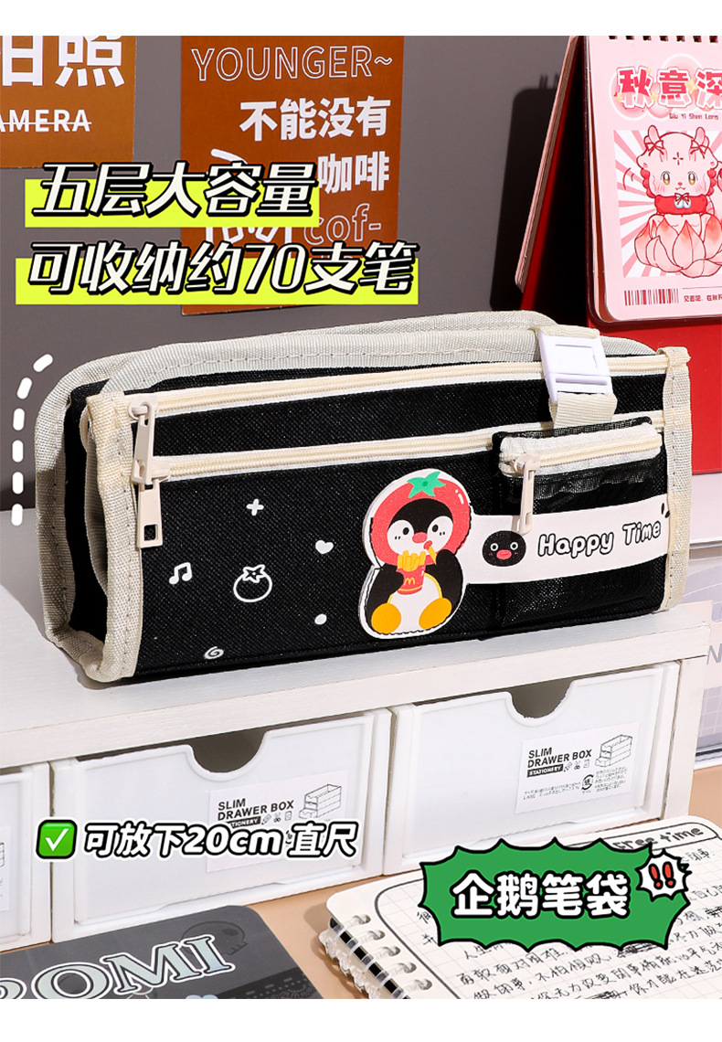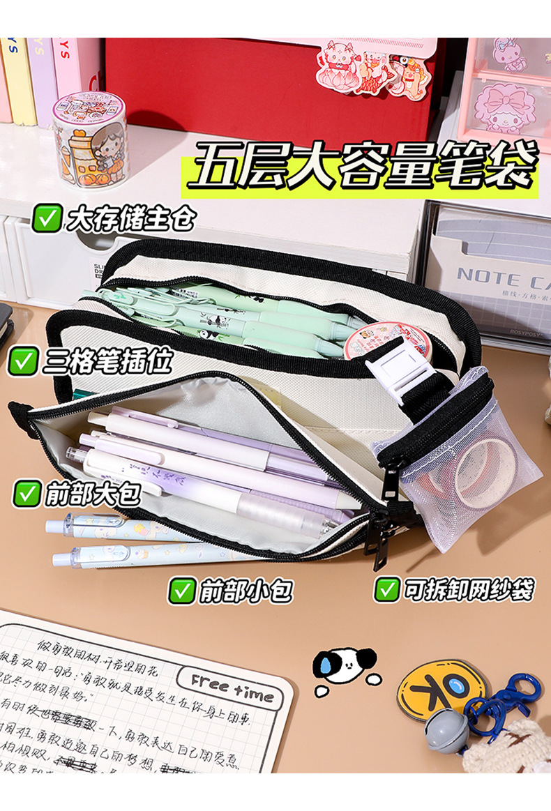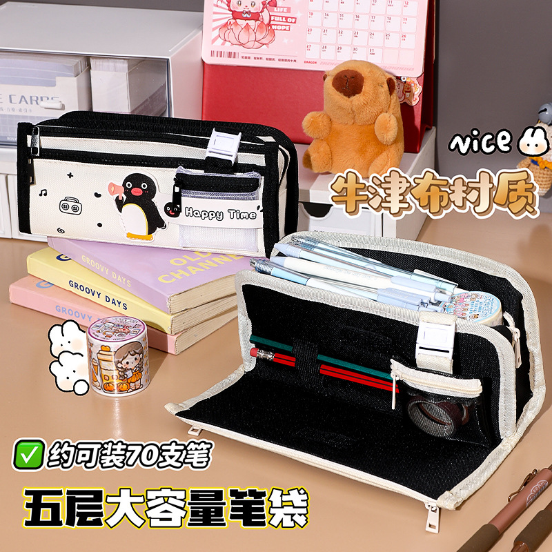 大容量笔袋五层文具盒牛津布学生分类收纳盒高颜值格子文具袋批发