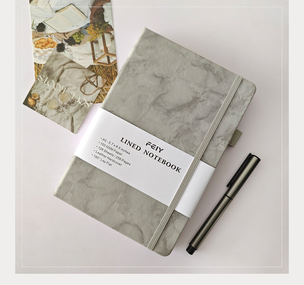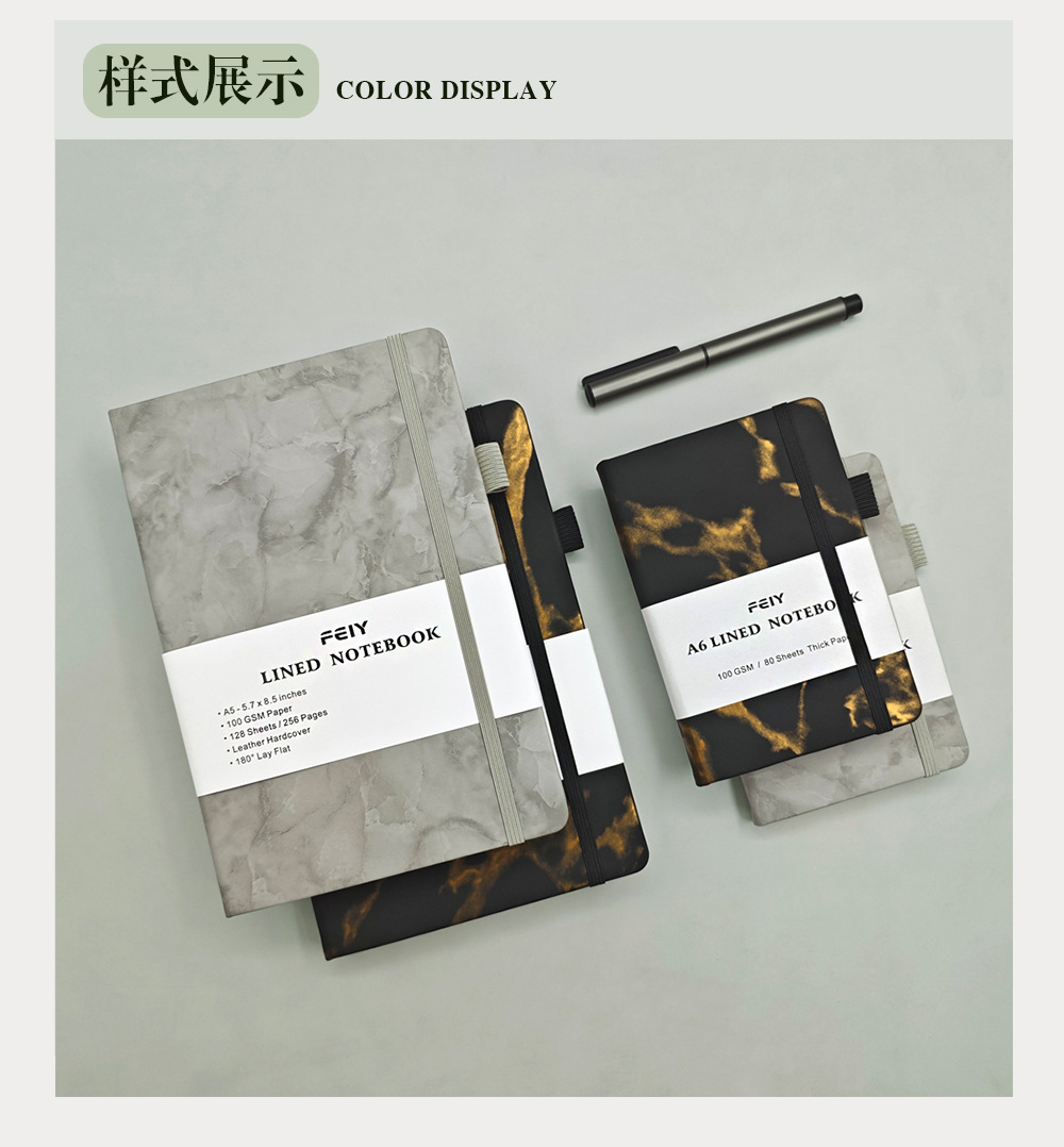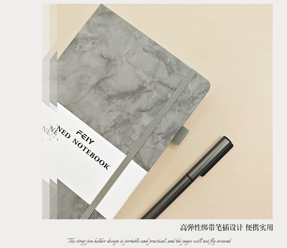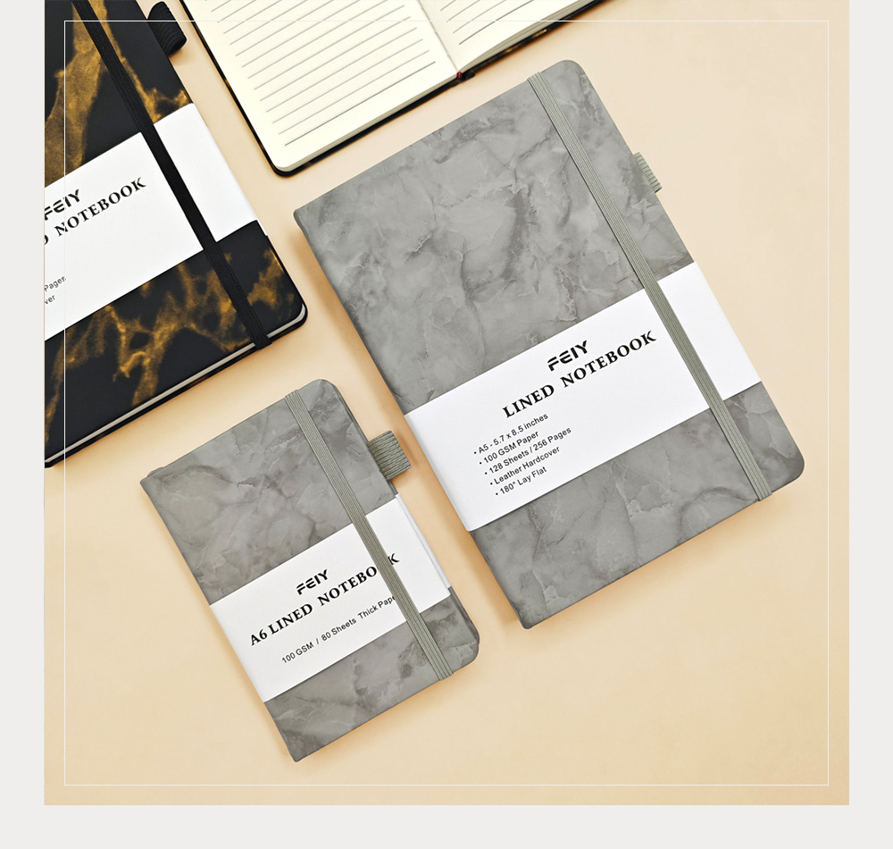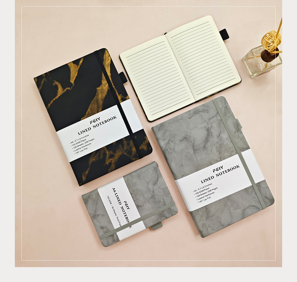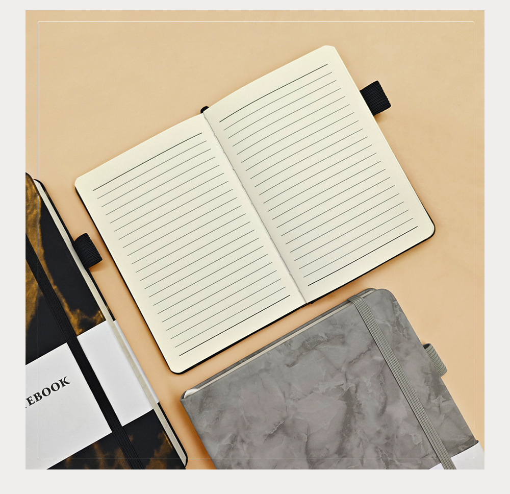 A5笔记本跨境横线厚本子大理石纹绑带记事本亚马逊A6小本子批发