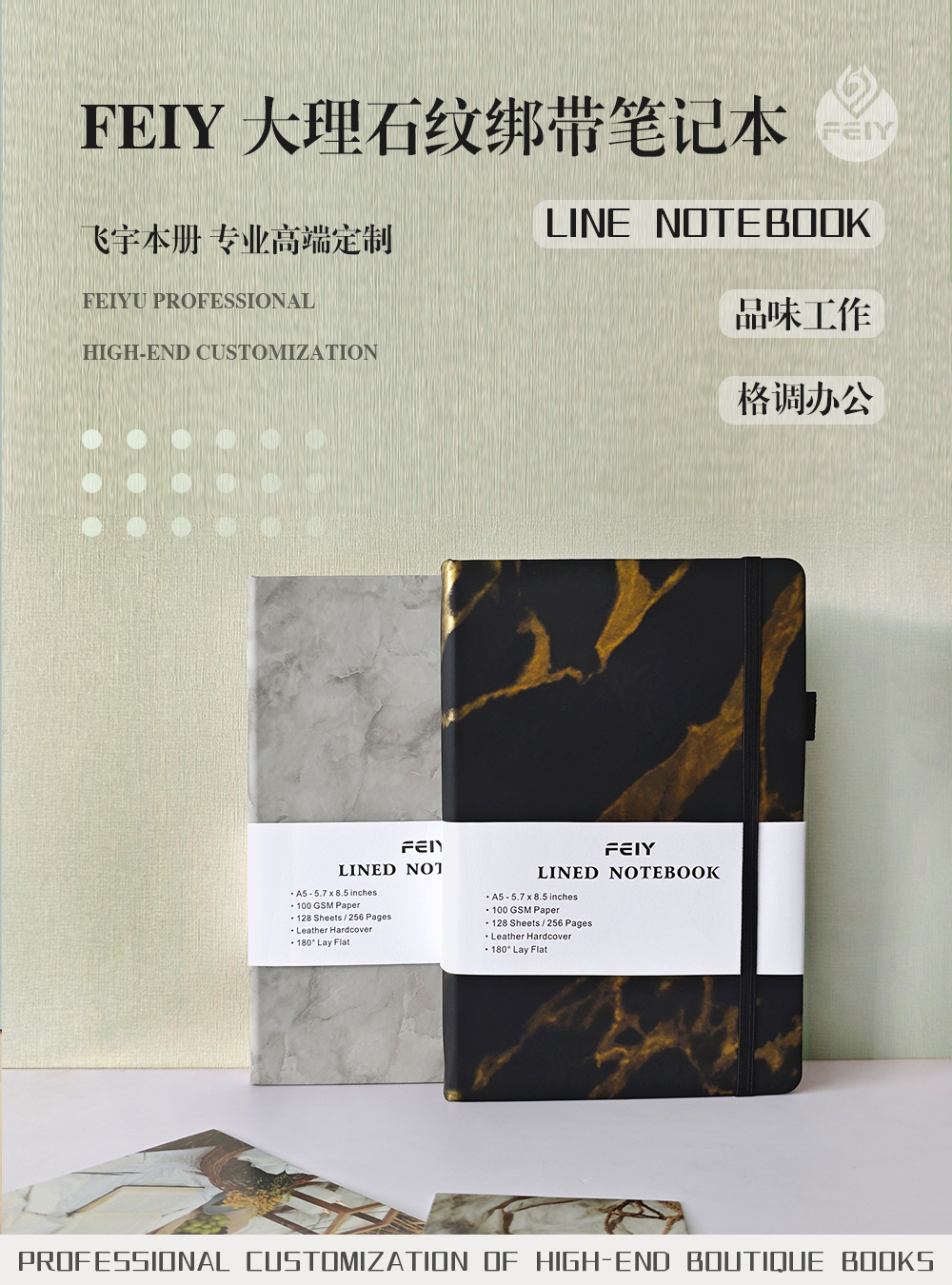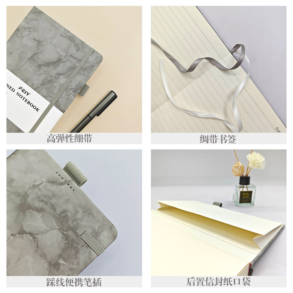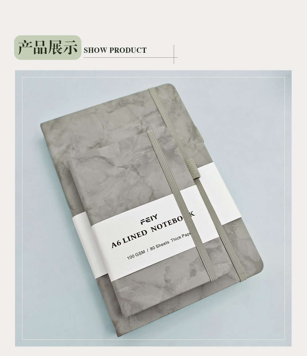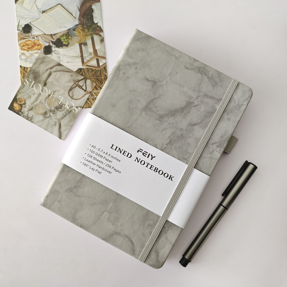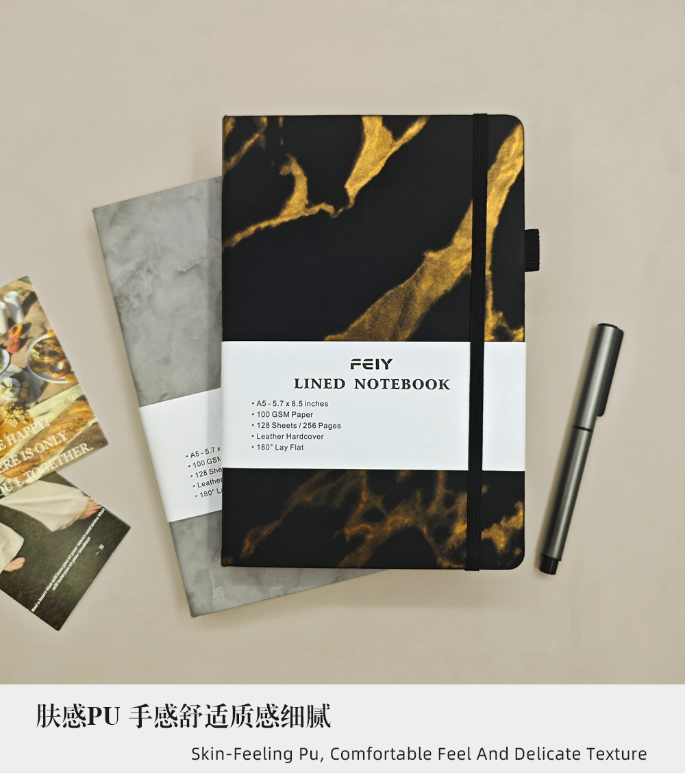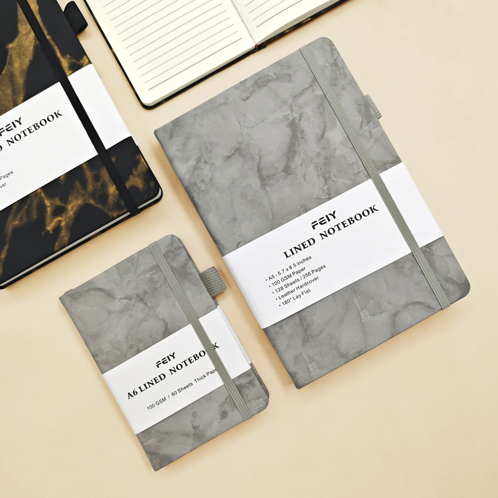 A5笔记本跨境横线厚本子大理石纹绑带记事本亚马逊A6小本子批发