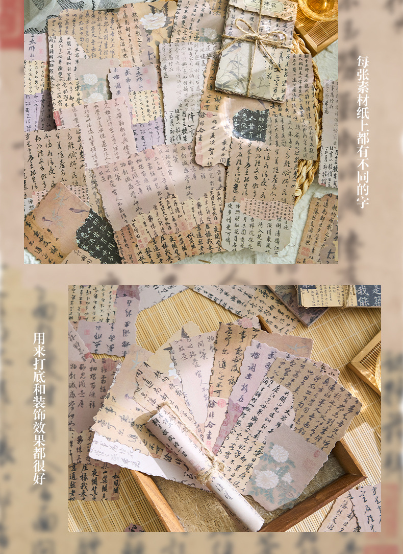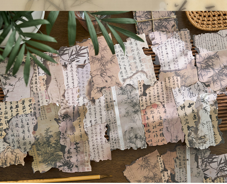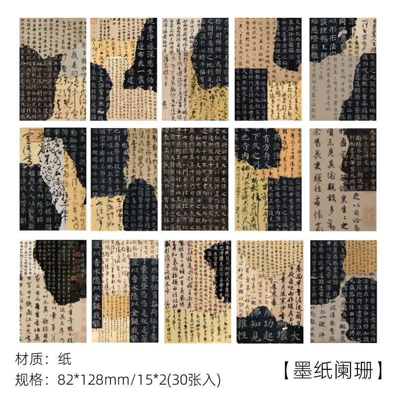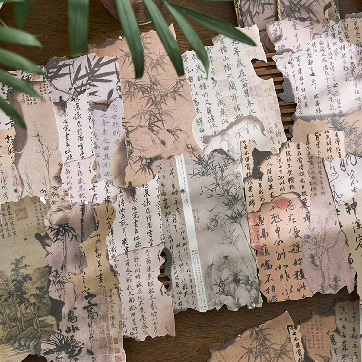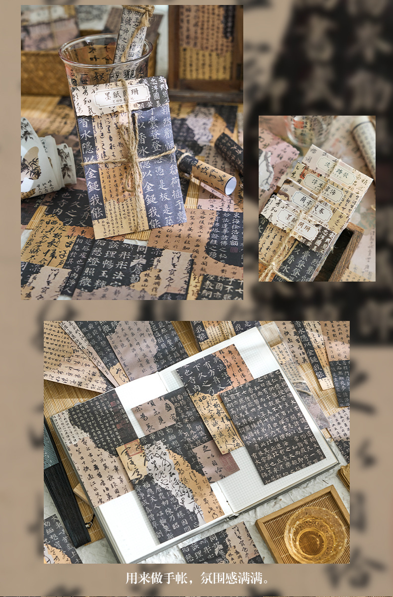 早沫古风素材纸 墨竹雅集系列 中国风书法文字手帐装饰打底素材纸