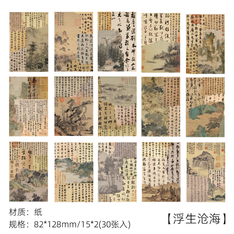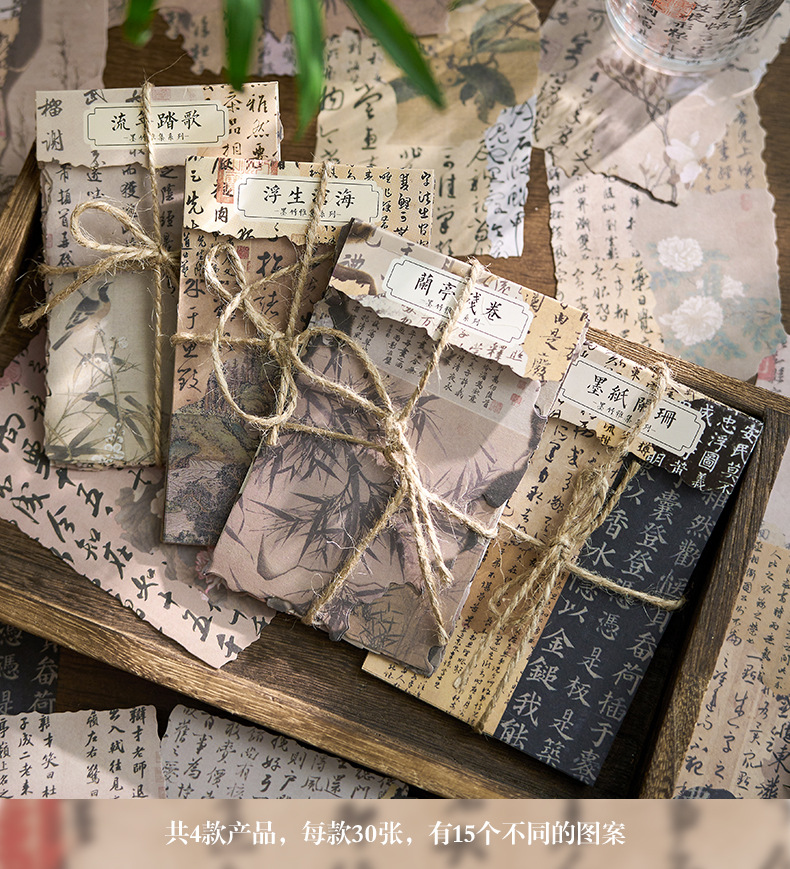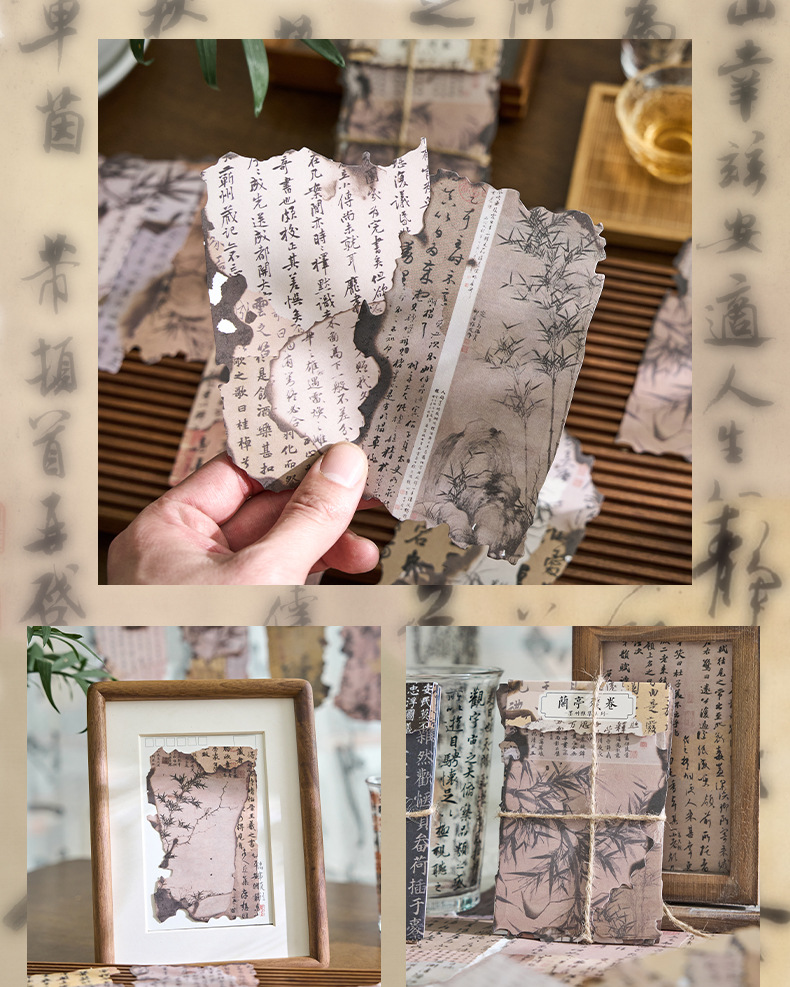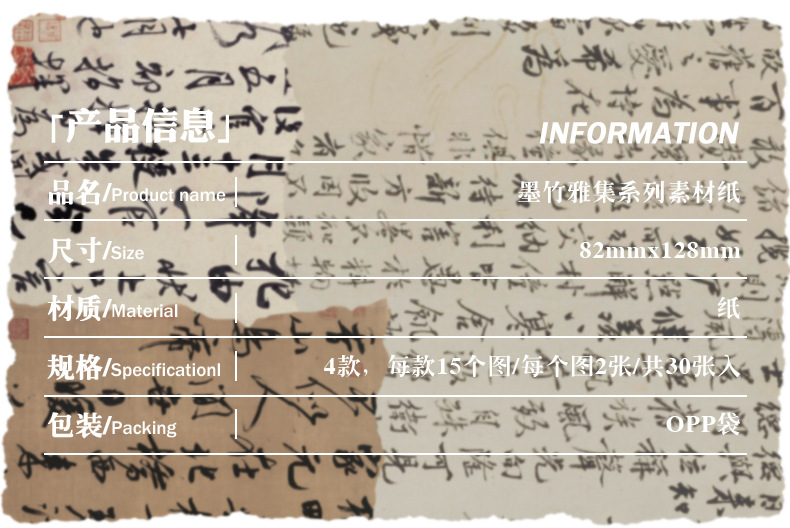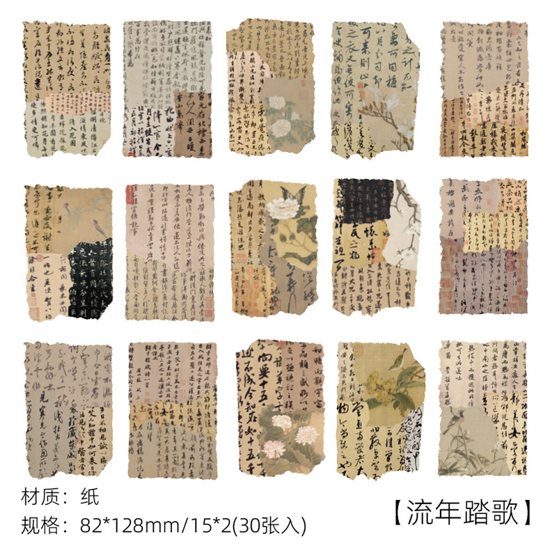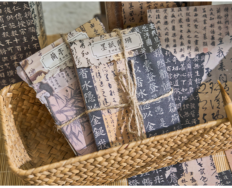 早沫古风素材纸 墨竹雅集系列 中国风书法文字手帐装饰打底素材纸