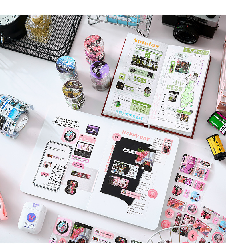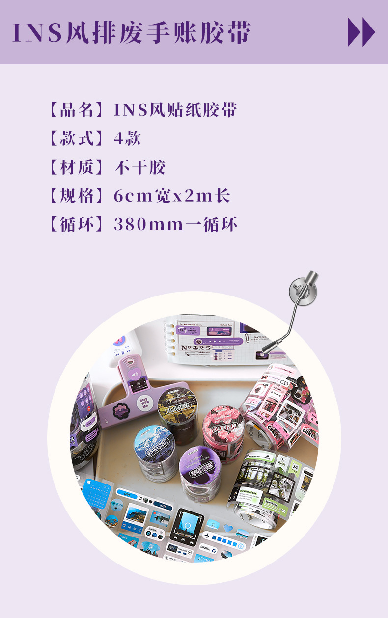 早沫排废胶带 雾岛晚歌系列 韩系ins简约基础手帐DIY素材贴纸 4款