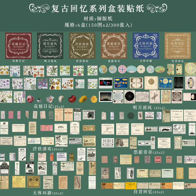 早沫盒装贴纸套装 时光笔记系列 300张手帐日记DIY装饰封口贴画
