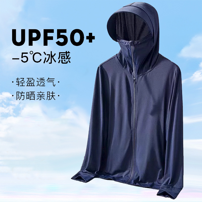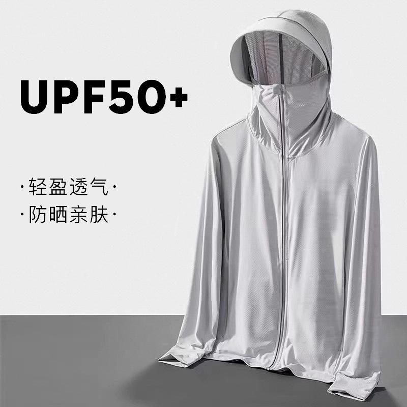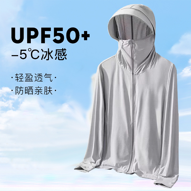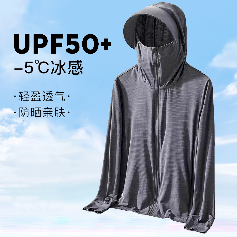 防晒衣男夏季户外钓鱼皮肤衣防紫外线薄款透气冰丝骑车连帽防晒衣