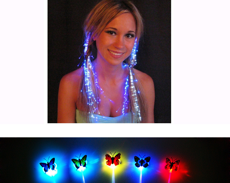 厂家直销七彩蝴蝶发光辫子led闪光光纤发亮假头发地摊货炫彩