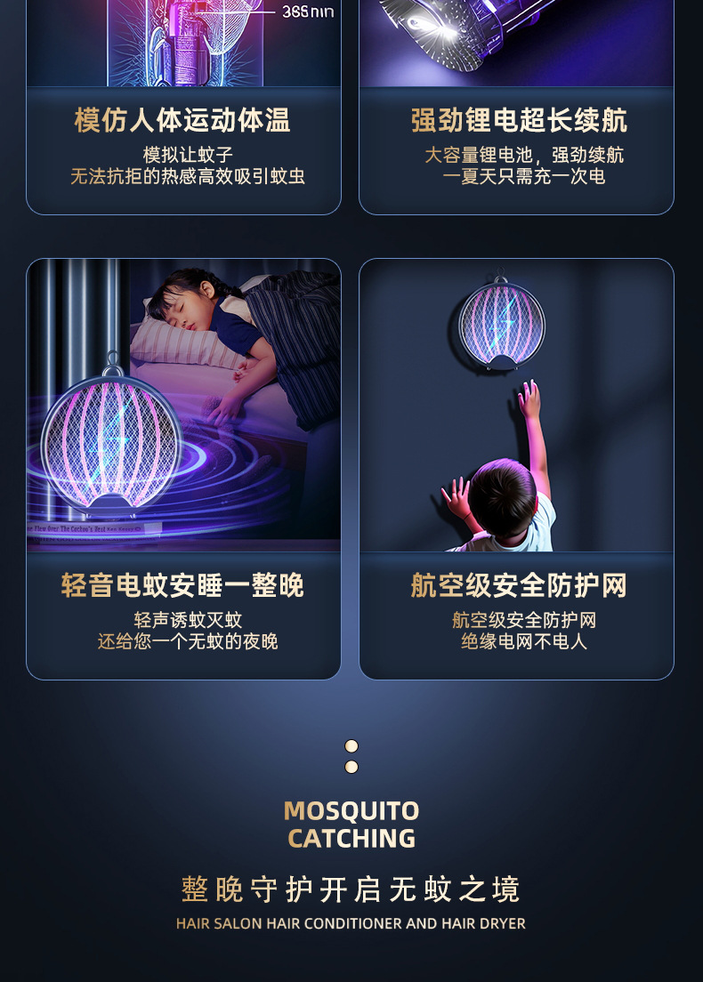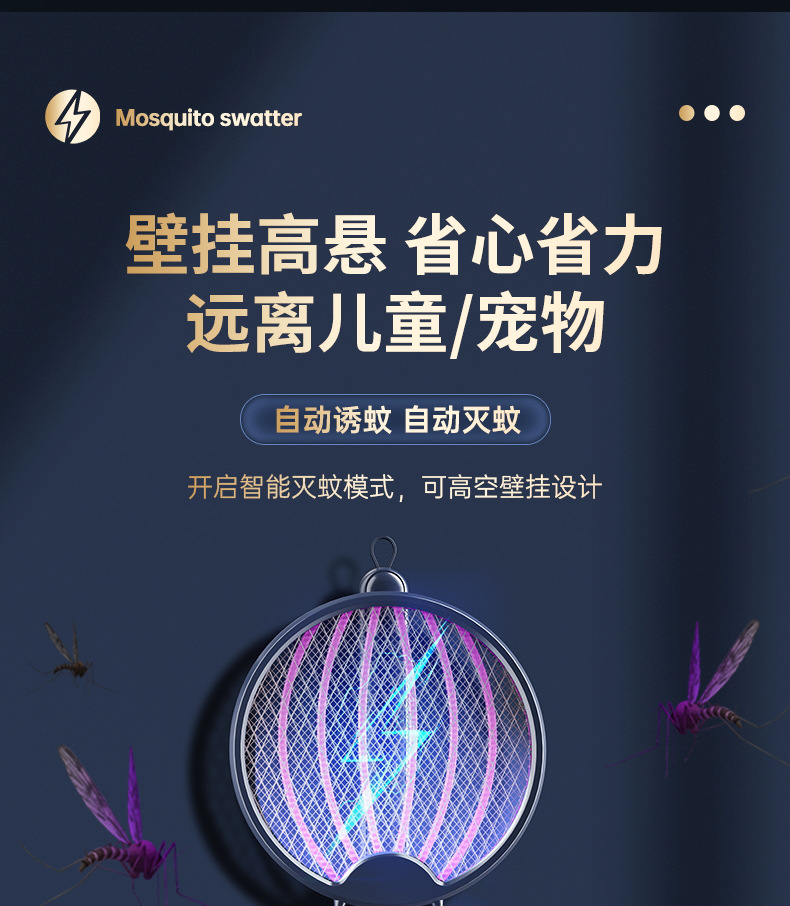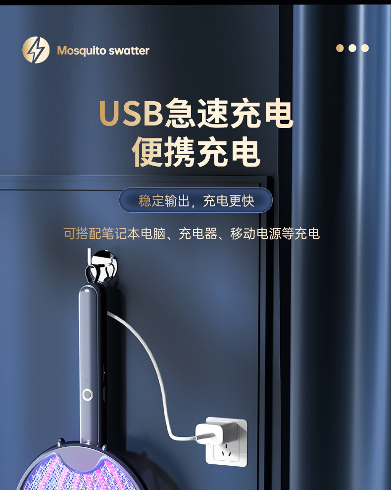 家用电蚊拍USB折叠灭蚊拍灭蚊灯二合一自动诱蚊跨境驱蚊器厂家