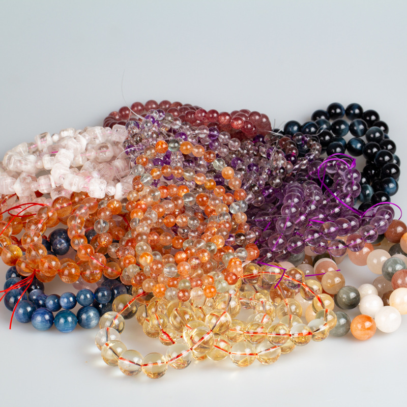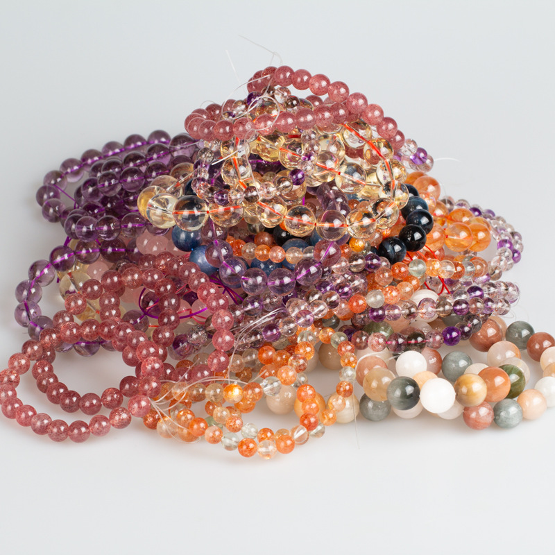 望哥直播专用 天然草莓晶红胶花幽灵兔毛发晶紫黄水晶手链 批发