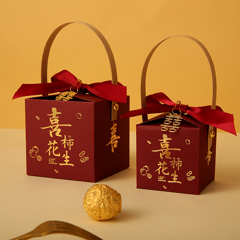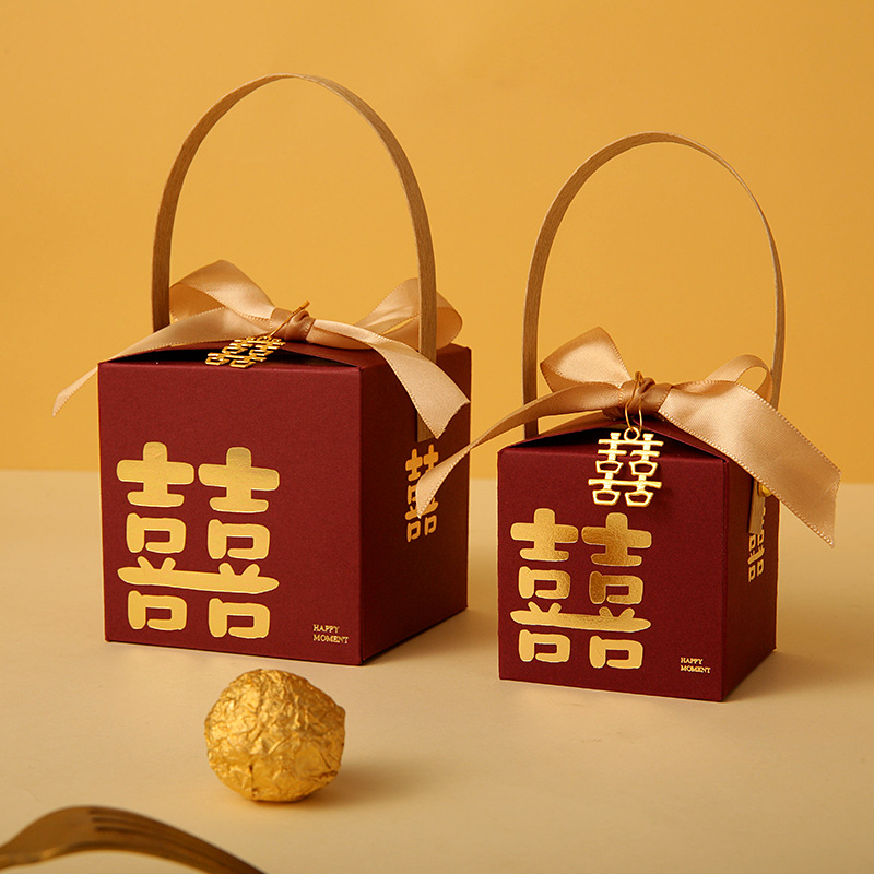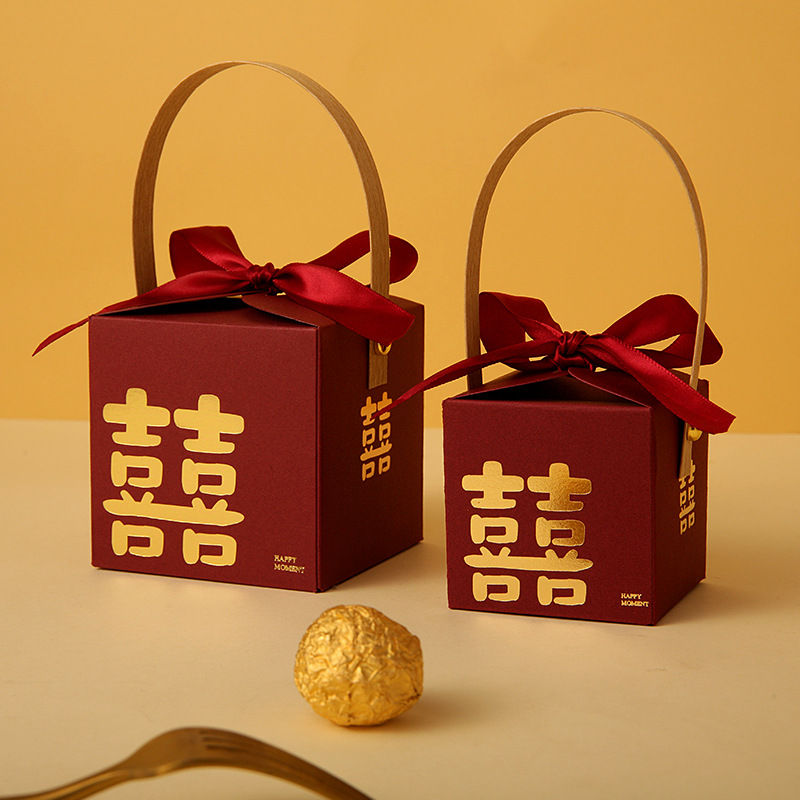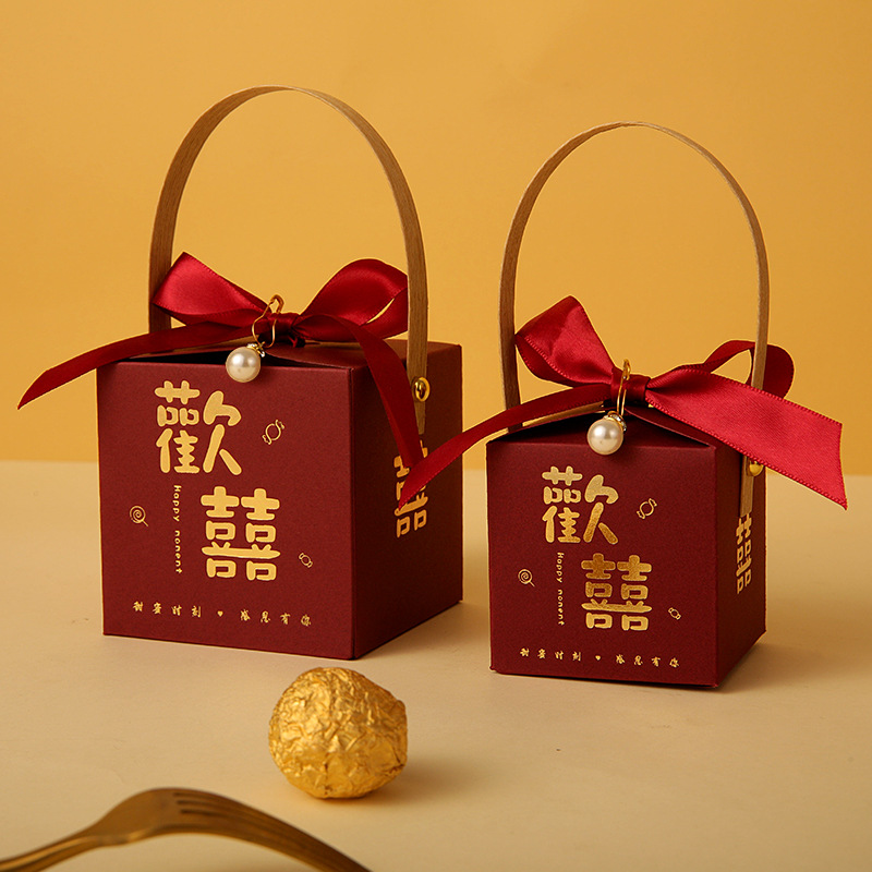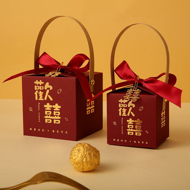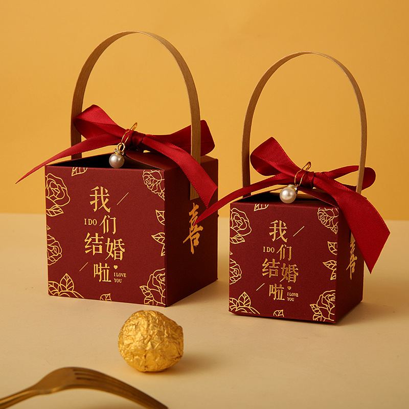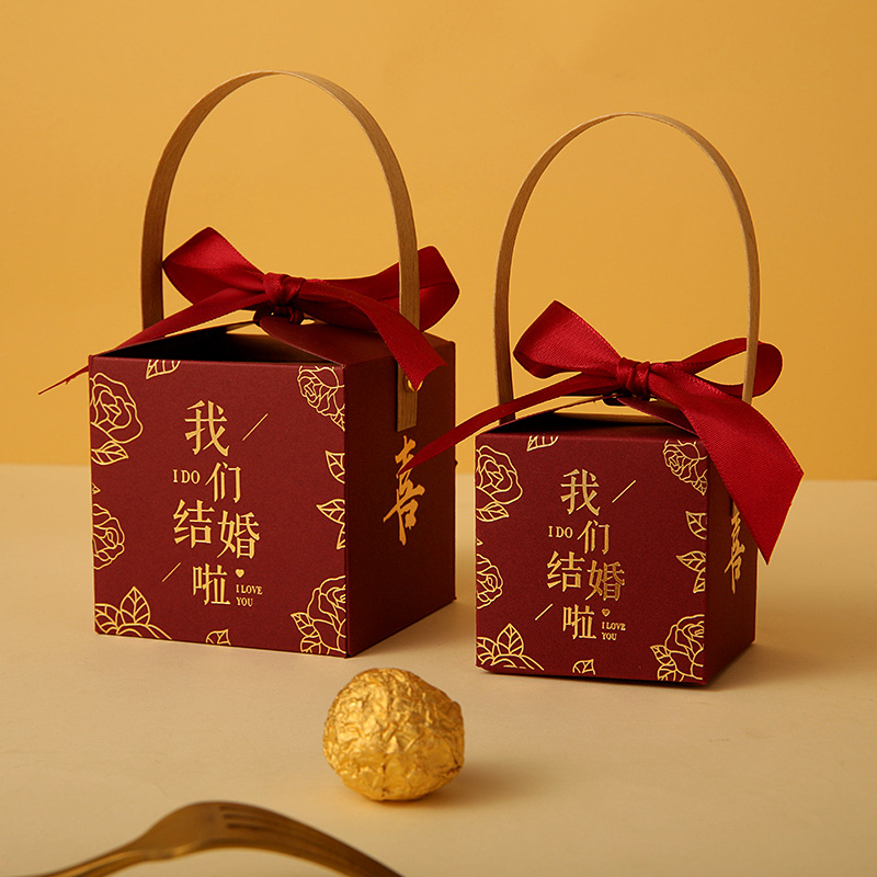 网红结婚手提式喜糖盒子婚礼糖果盒伴手礼喜糖袋包装空盒回礼专用