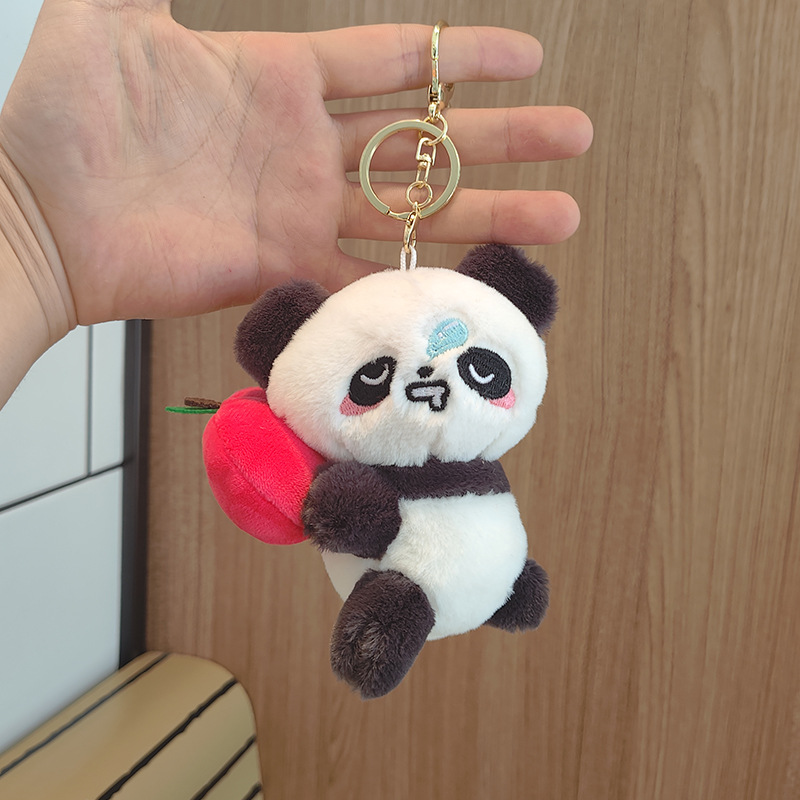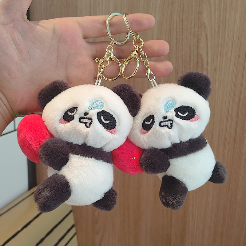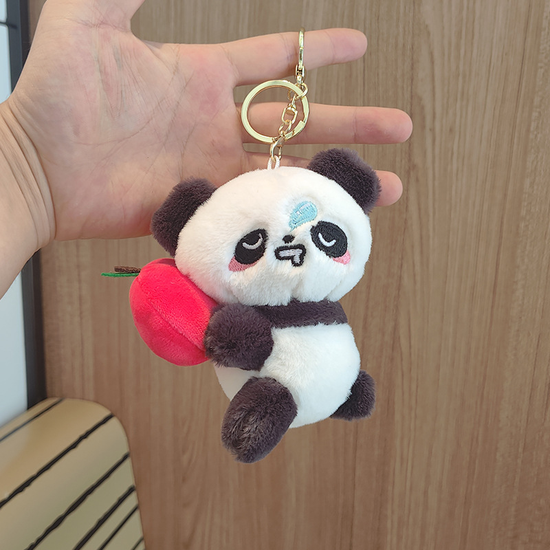 可爱水果熊猫钥匙扣公仔玩偶包包情侣挂件生日礼物4寸抓机娃娃