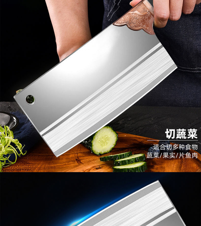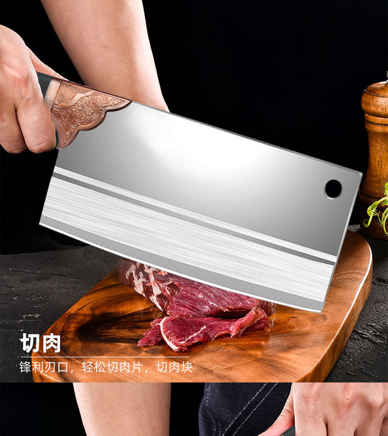 不锈钢菜刀厨房切菜刀锻打斩切两用菜刀厨师切肉刀切片刀斩骨刀