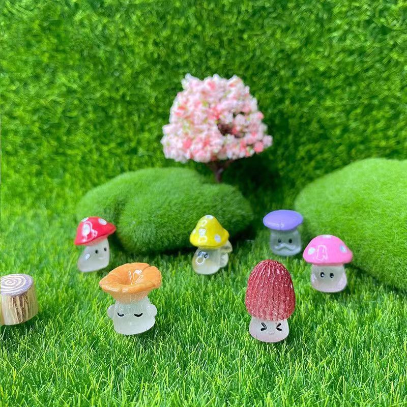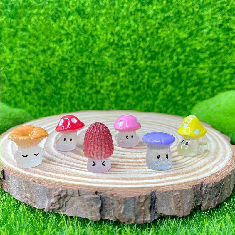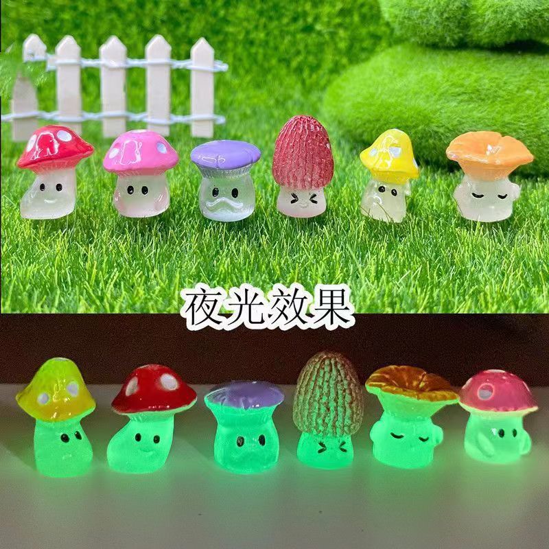 仿真树脂卡通造型野生菌菇小蘑菇微景观装饰品造景苔藓夜光小摆件