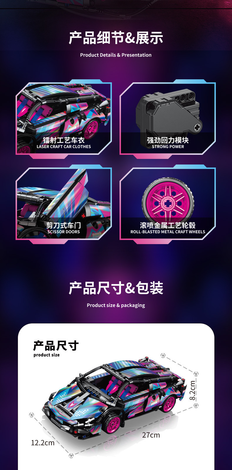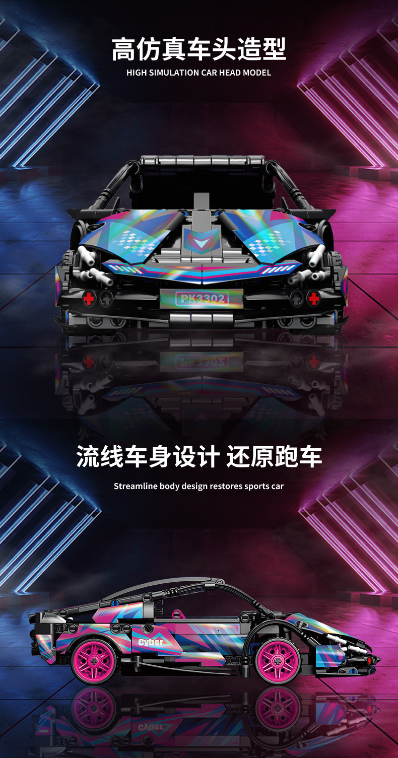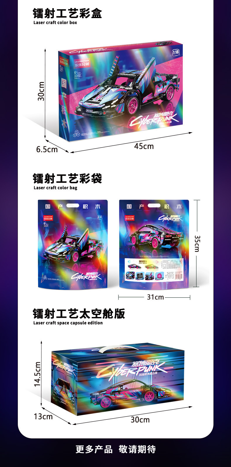 乐乐兄弟兼容乐高赛博朋克蓝博基尼绿牛跑车积木模型儿童拼装玩具