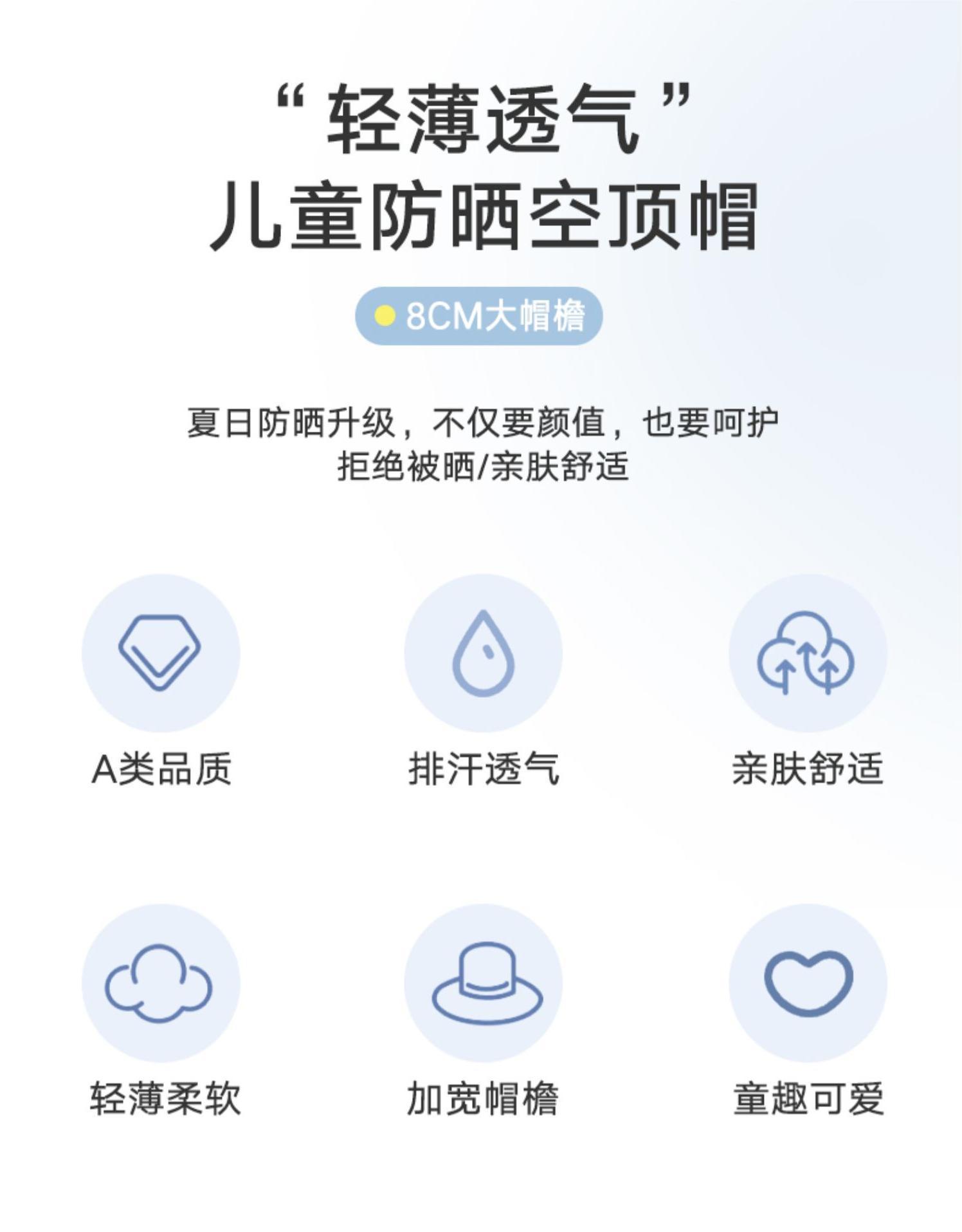 儿童防晒帽夏季帽子男宝宝遮阳帽男童女童空顶帽男孩太阳防紫外线