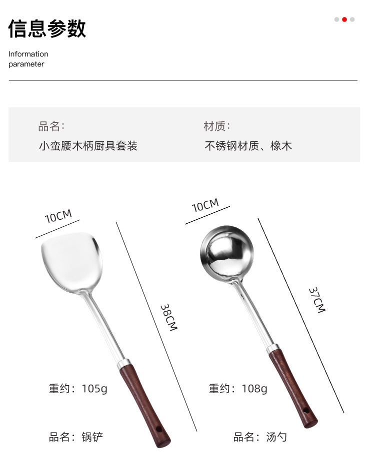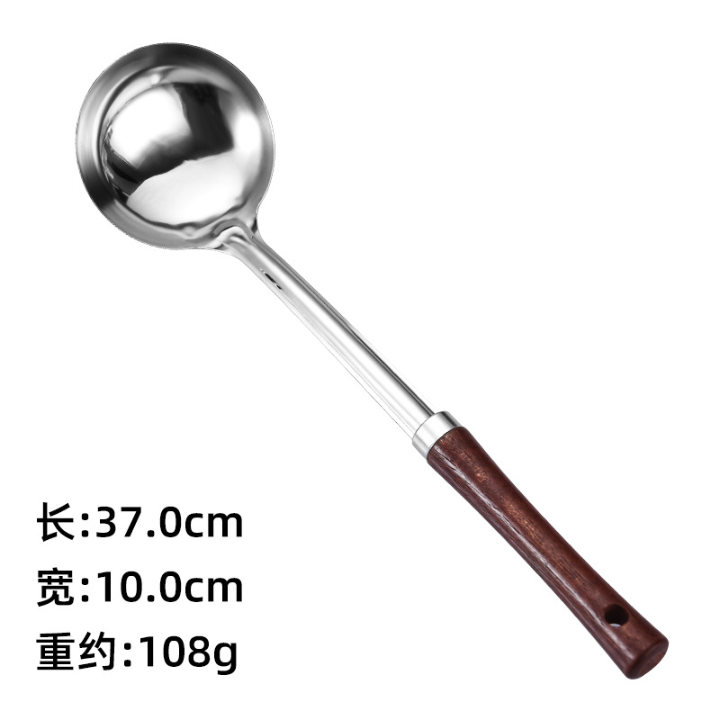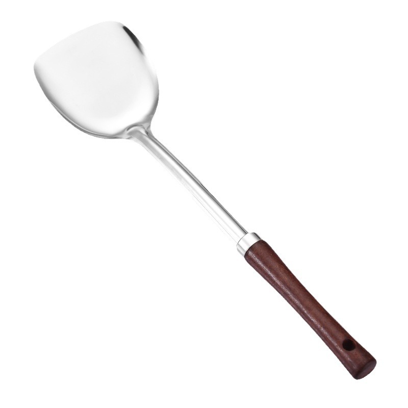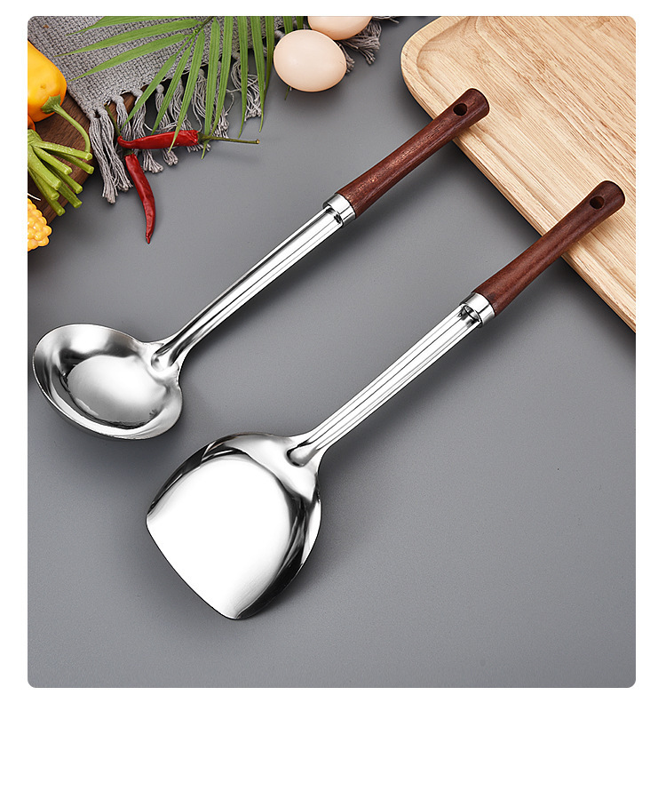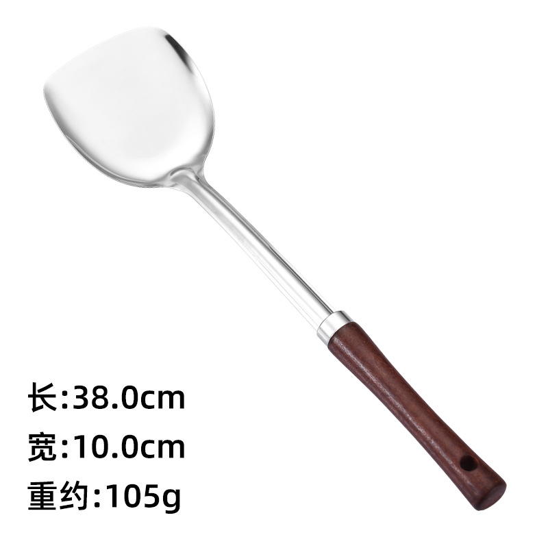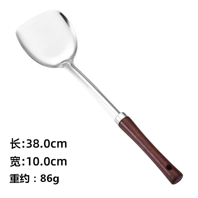 烹饪用具汤勺锅铲把手柄木头 无磁不锈钢家用厨房炒菜铲子
