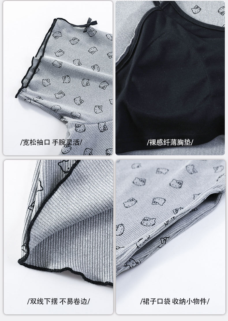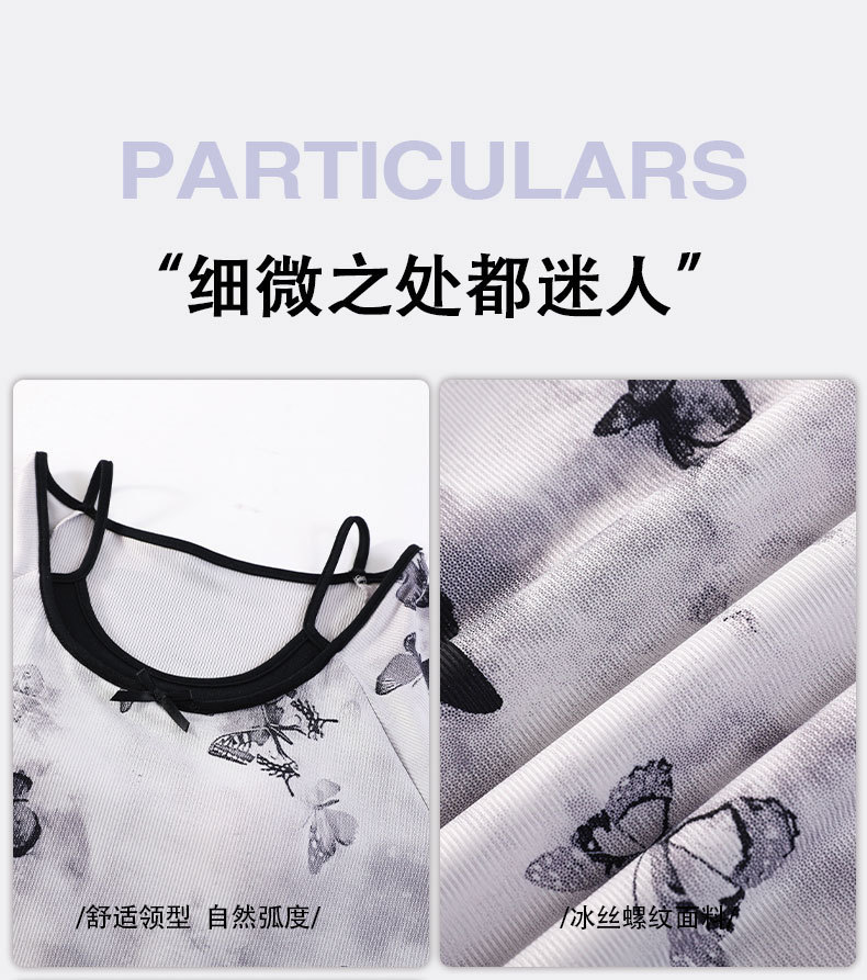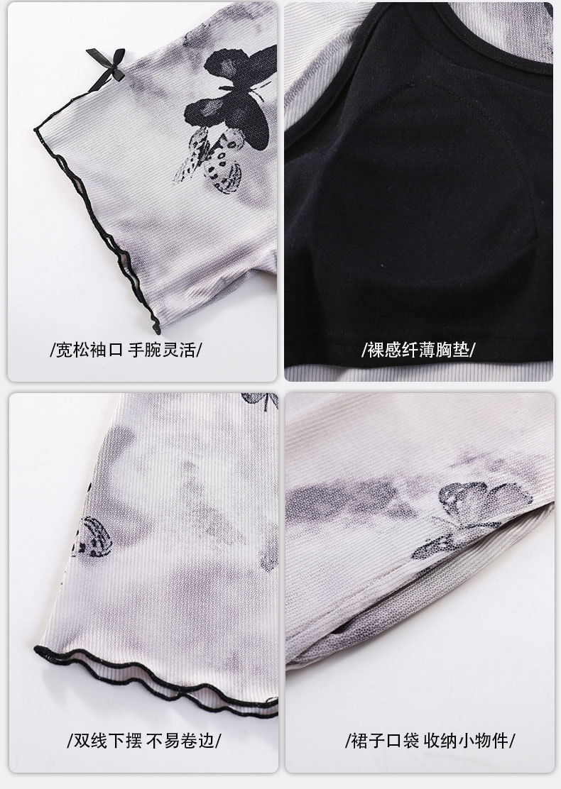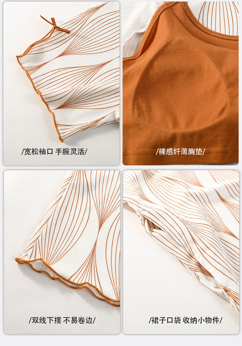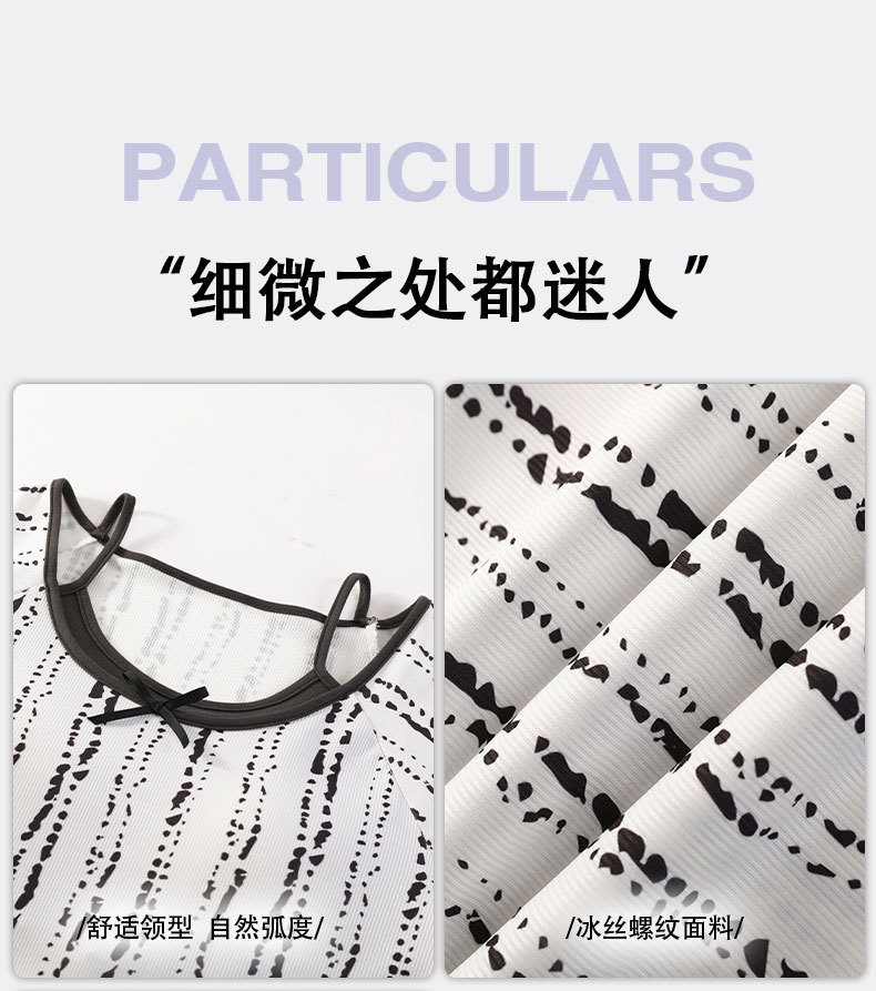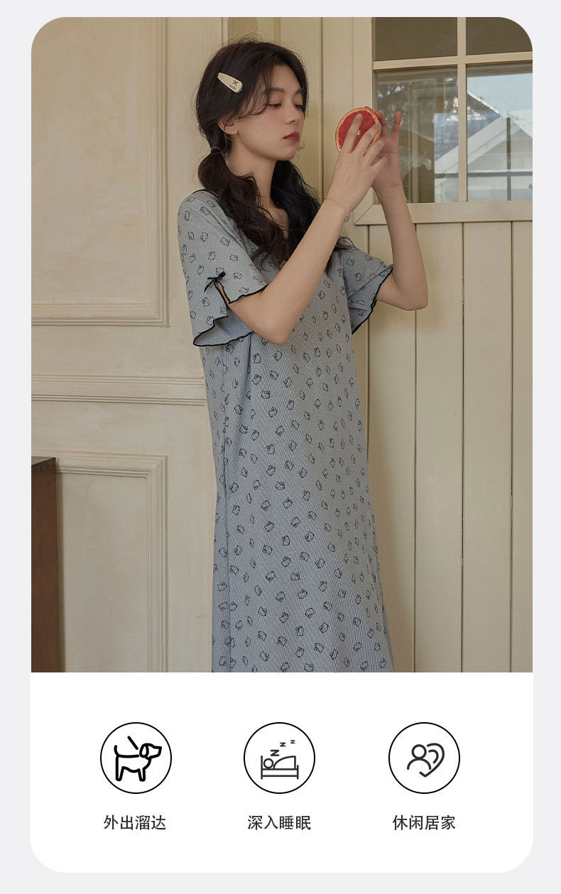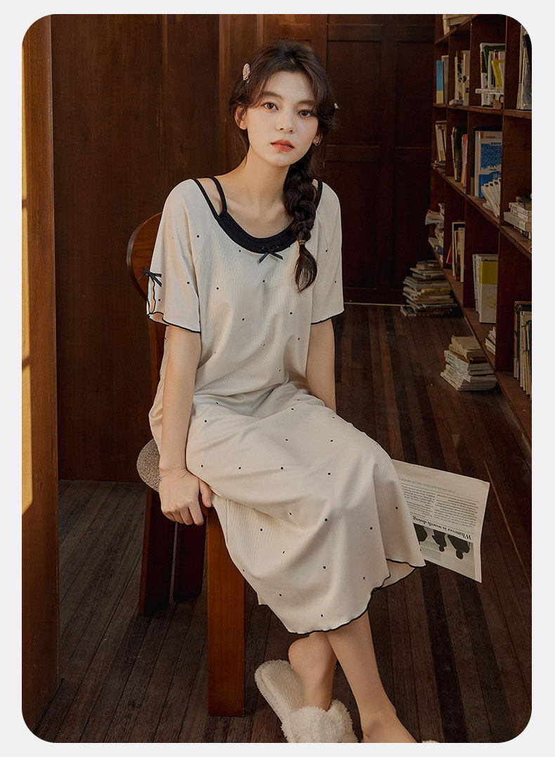 带胸垫睡裙女夏季薄款冰丝螺纹短袖裙甜美长款过膝连衣裙长裙爆款