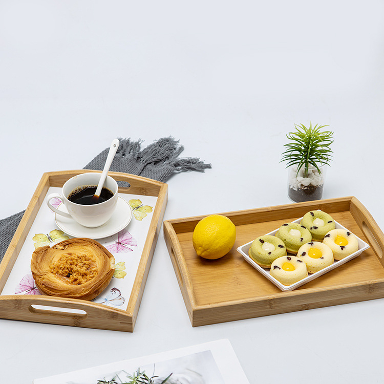 定制竹木托盘家用面包水果双耳托盘竹制酒店茶水托盘烧烤盘装饰盘