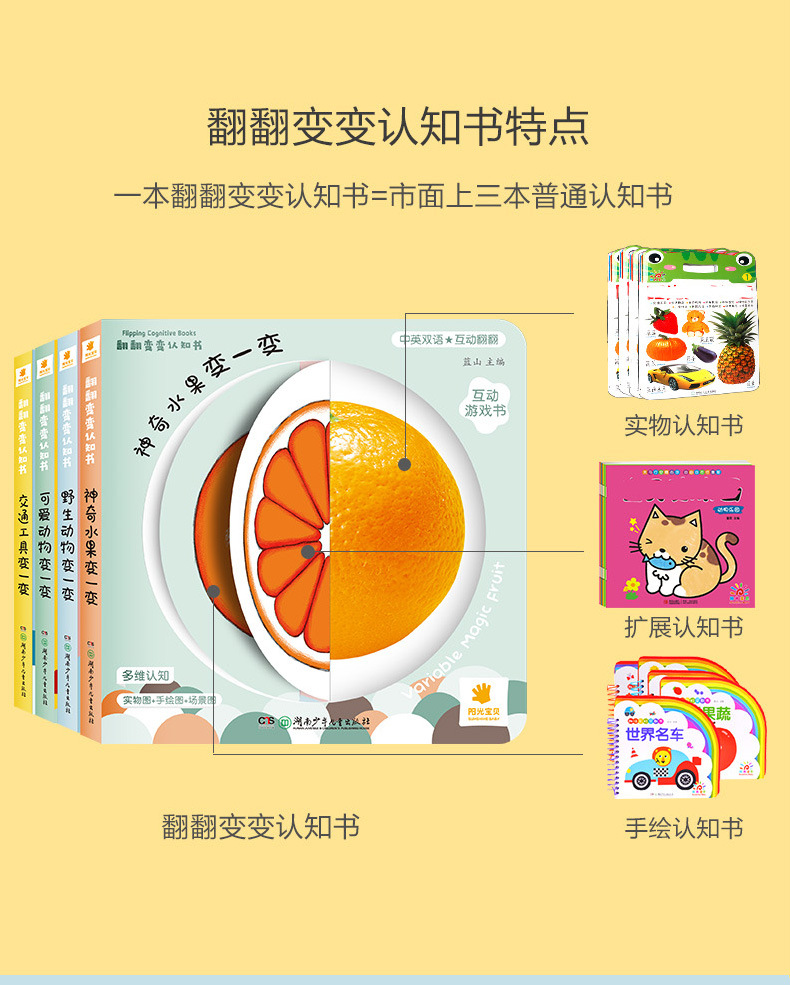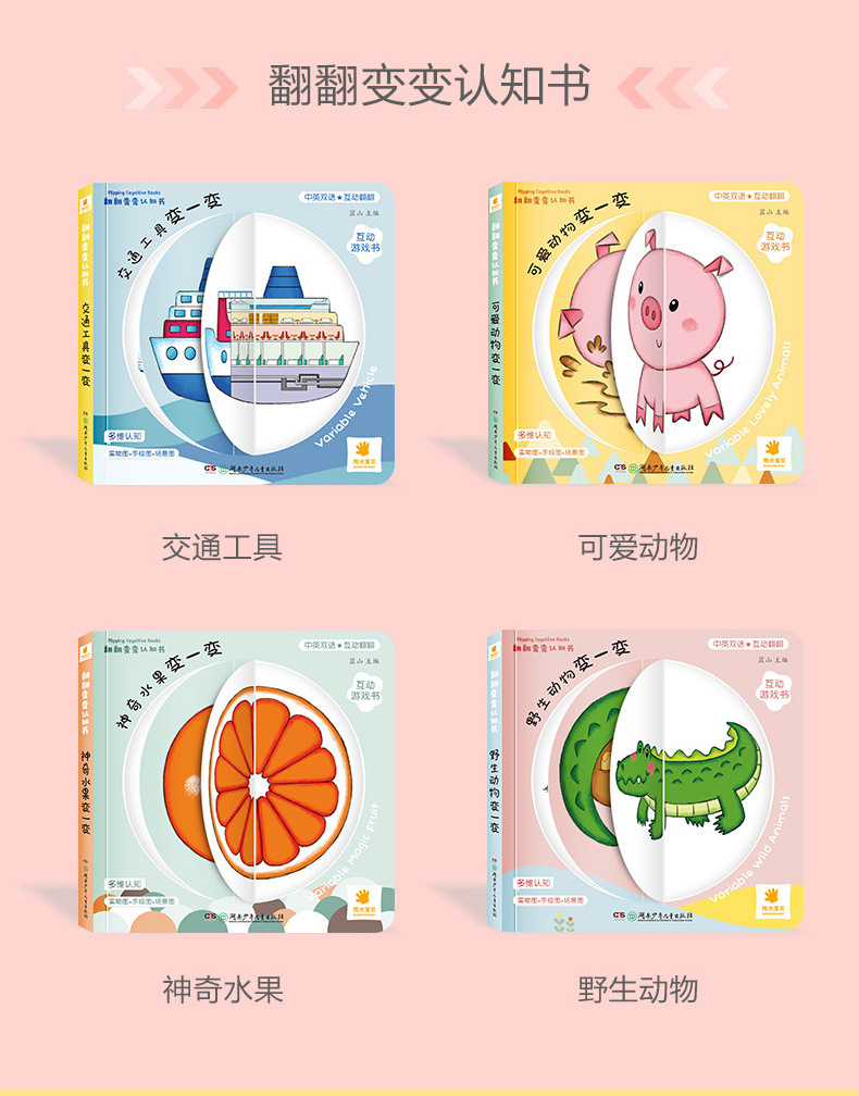 翻翻变变认知书全4册幼儿早教启蒙书儿童绘本0-3岁宝宝书机关书