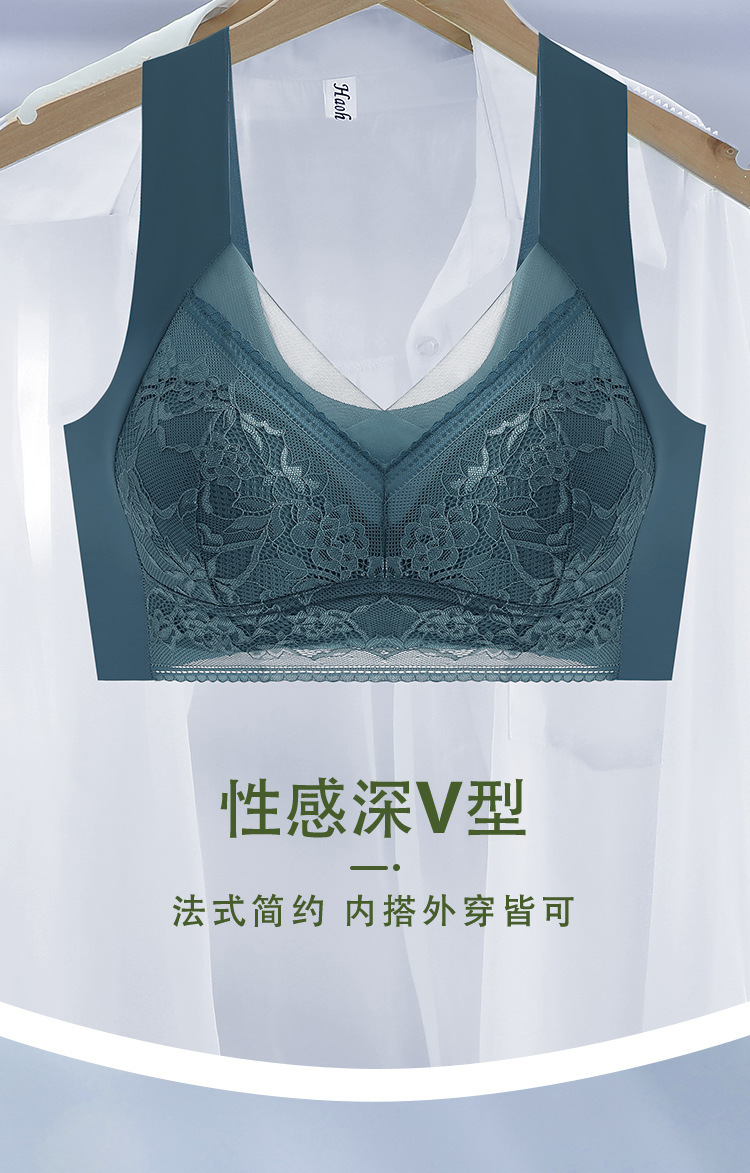 跨境欧美夏季冰丝无痕内衣女一体式固定杯运动蕾丝加大码聚拢文胸