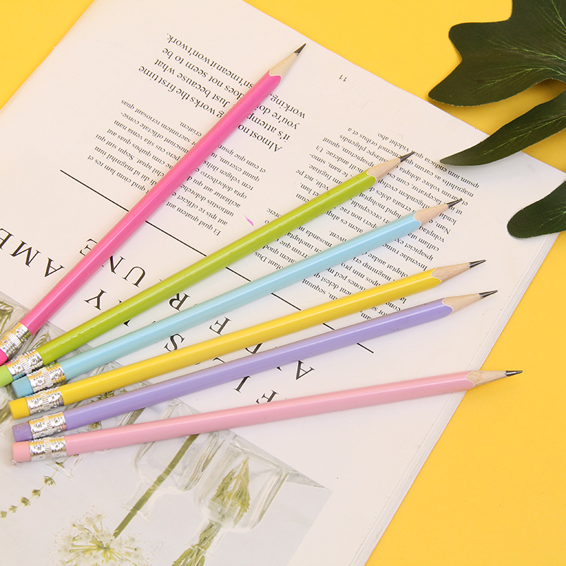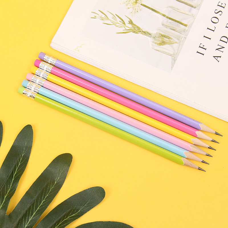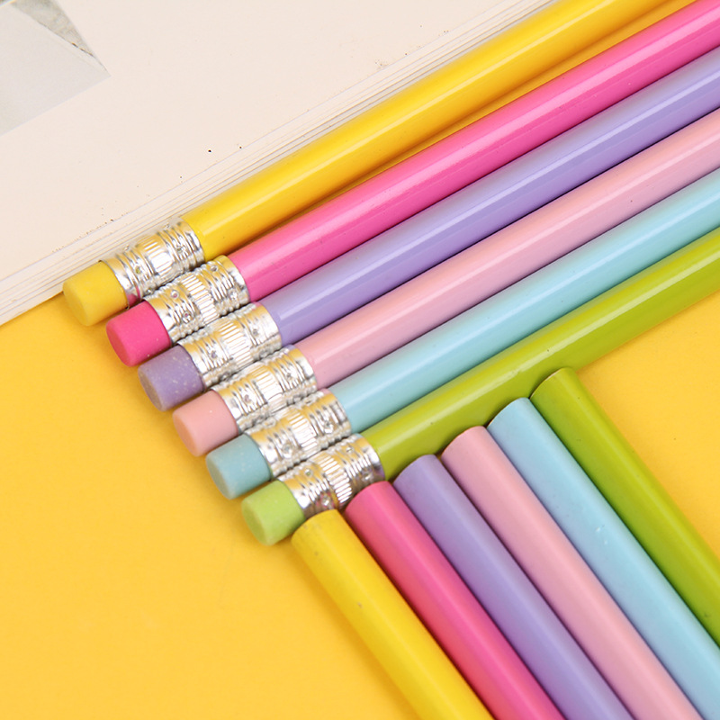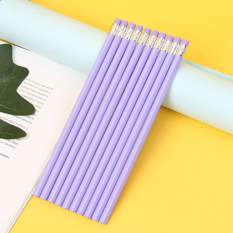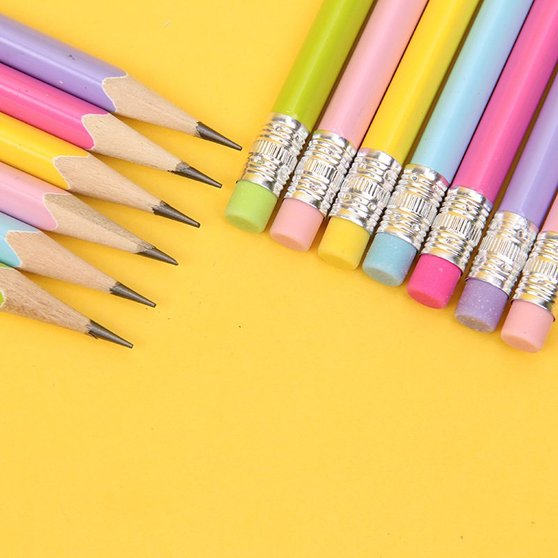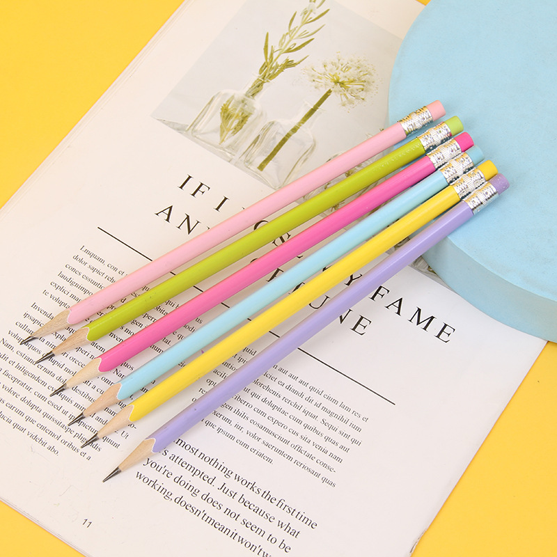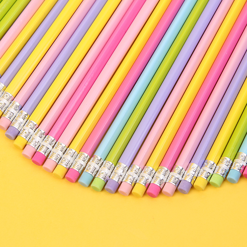 工厂直销 HB/2B亮光皮头铅笔马卡龙三角杆带橡皮头儿童书写笔文具
