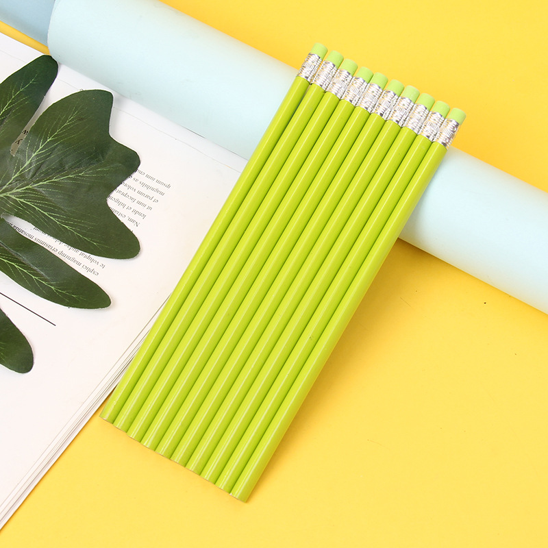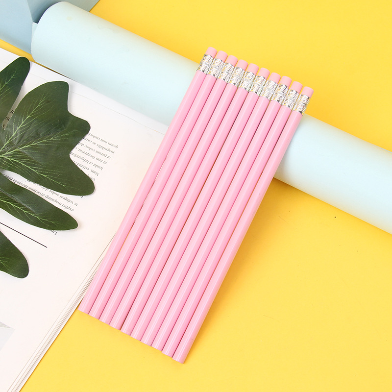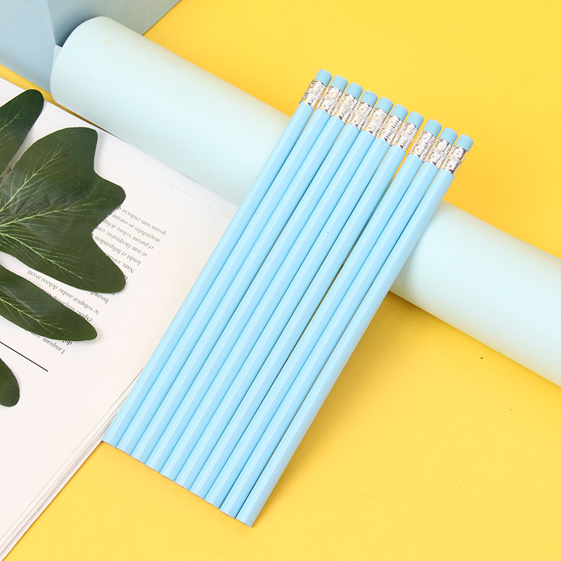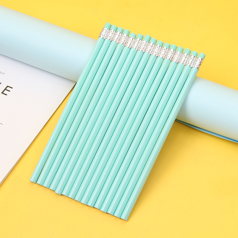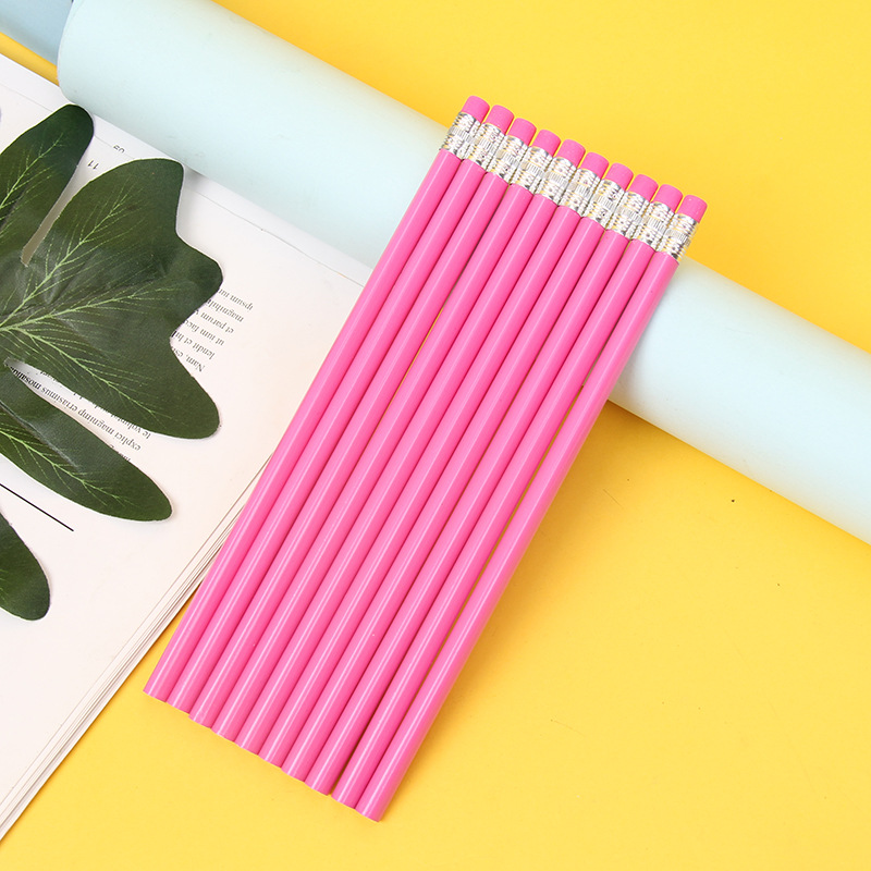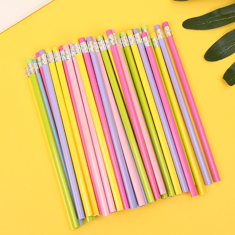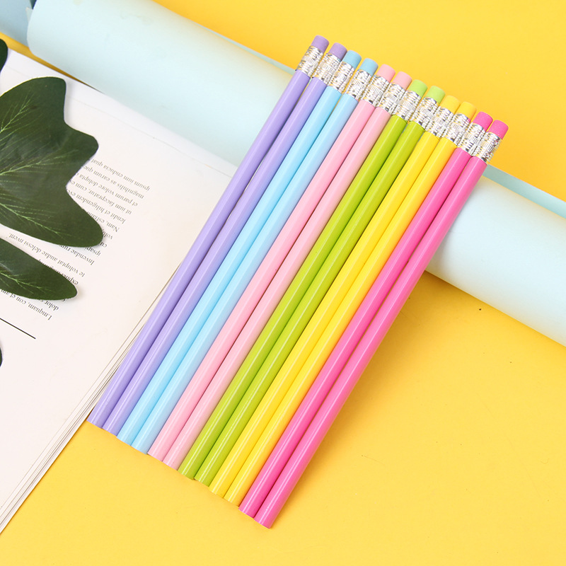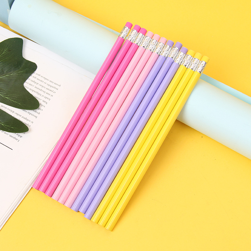 工厂直销 HB/2B亮光皮头铅笔马卡龙三角杆带橡皮头儿童书写笔文具