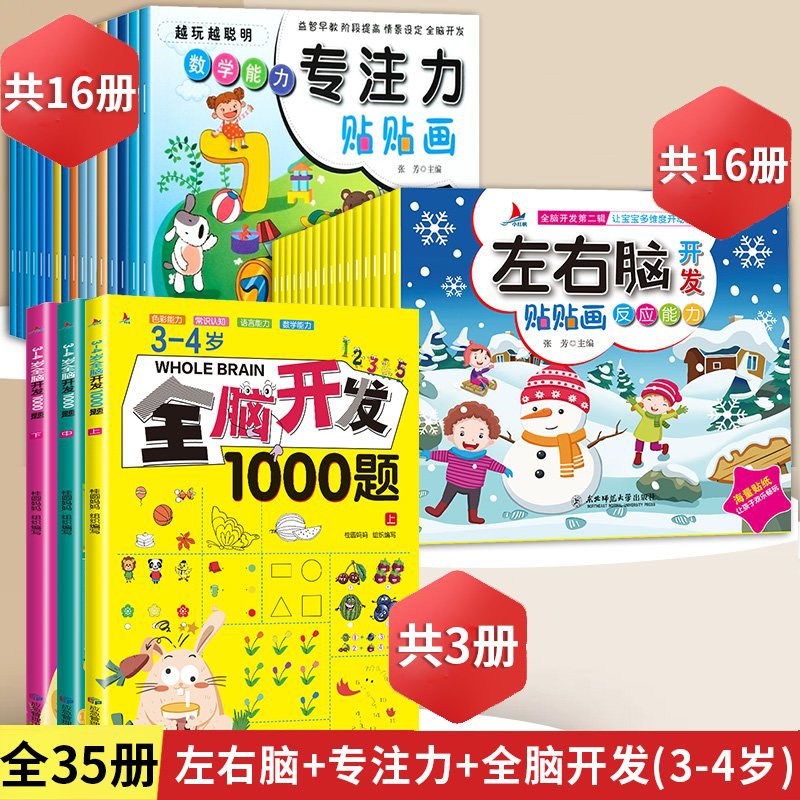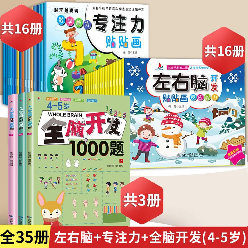 专注力训练贴纸书宝宝书籍3-6岁绘本早教书男孩用书婴儿益智启蒙