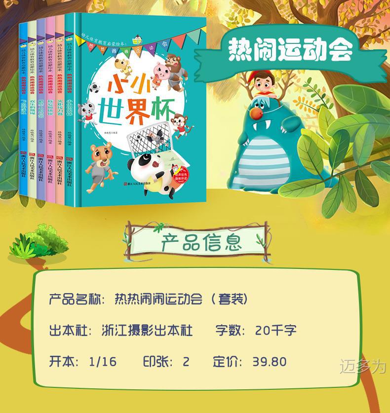 幼儿体育教育启蒙绘本全6册 飞鱼游泳队 热热闹闹运动会小班中大