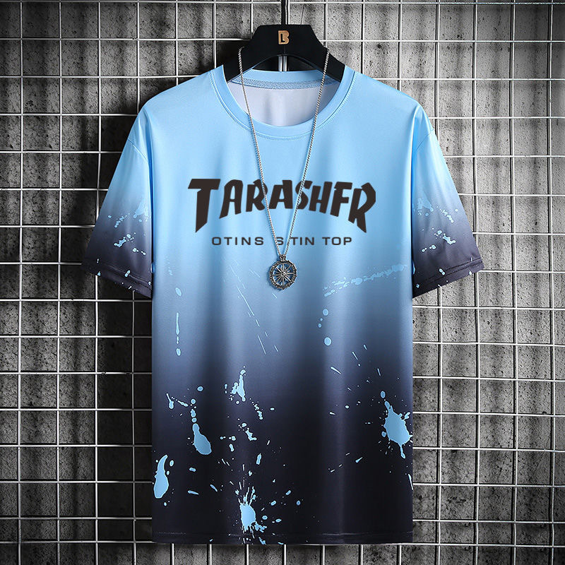 新款速干冰丝渐变套装男短袖t恤夏季休闲短裤运动两件套帅气男装