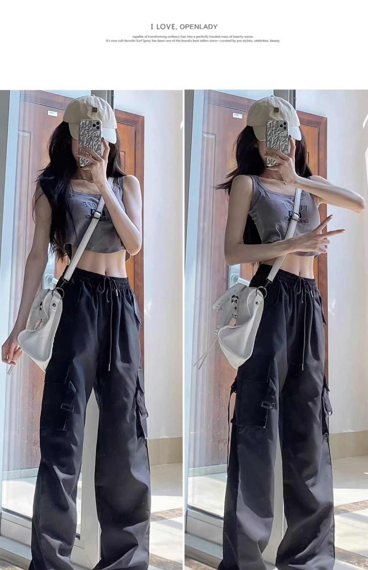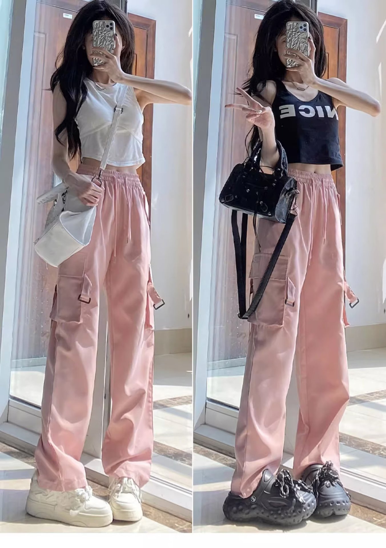 2025小个子工装裤女秋季休闲裤高腰宽松阔腿裤美式速干运动裤常规