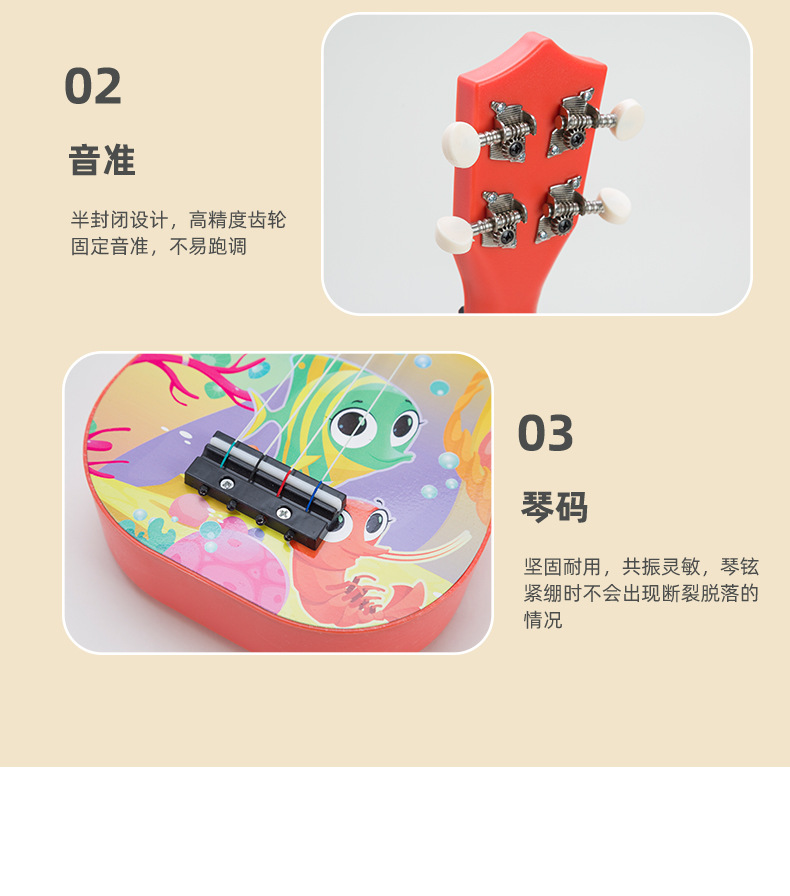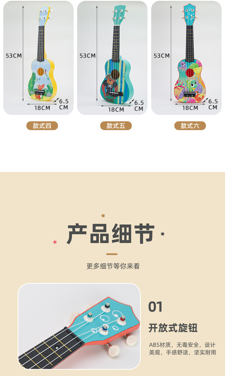 工厂定制新款21寸尤克里里儿童木制可演奏小吉他迷你四弦早教玩具