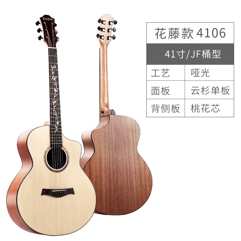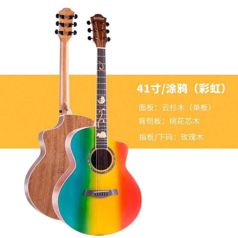 41寸单板民谣吉他guitar 云杉木涂鸦指板成人木吉他jita面单 乐器