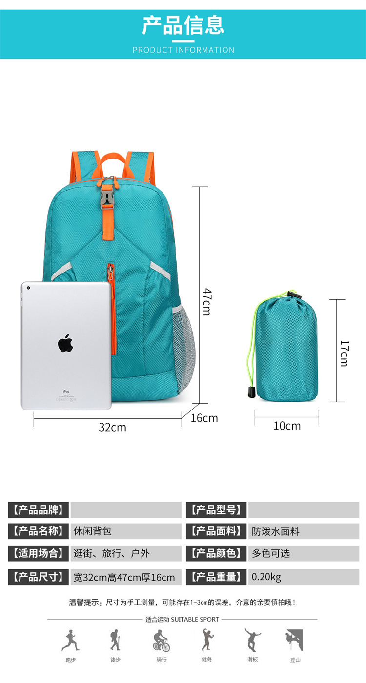 跨境新款户外防泼水运动背包折叠收纳包包轻便旅行包大容量双肩包
