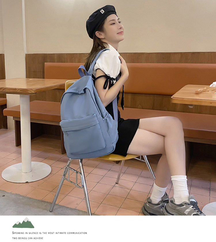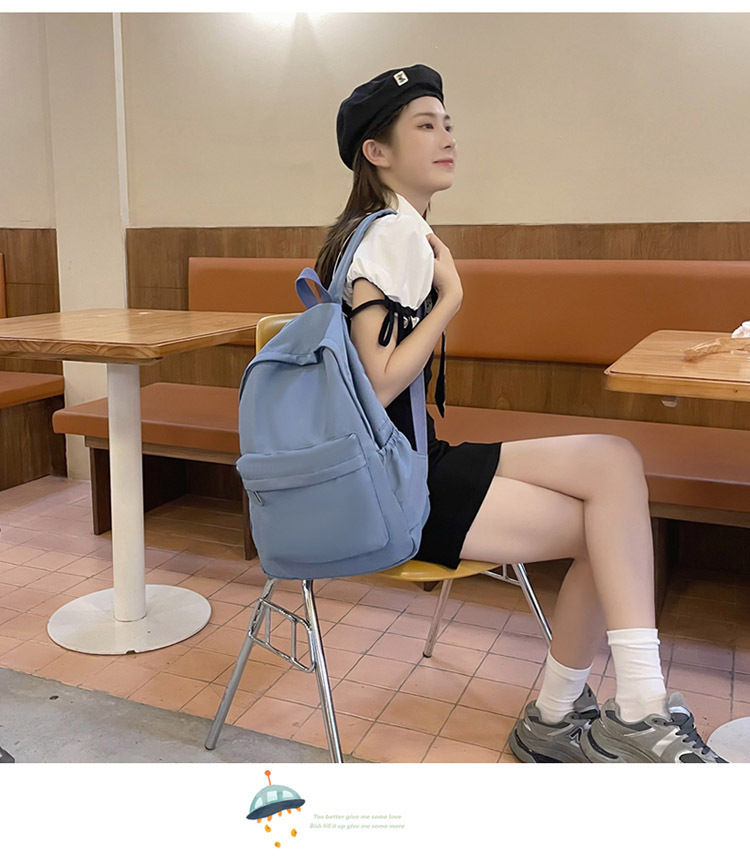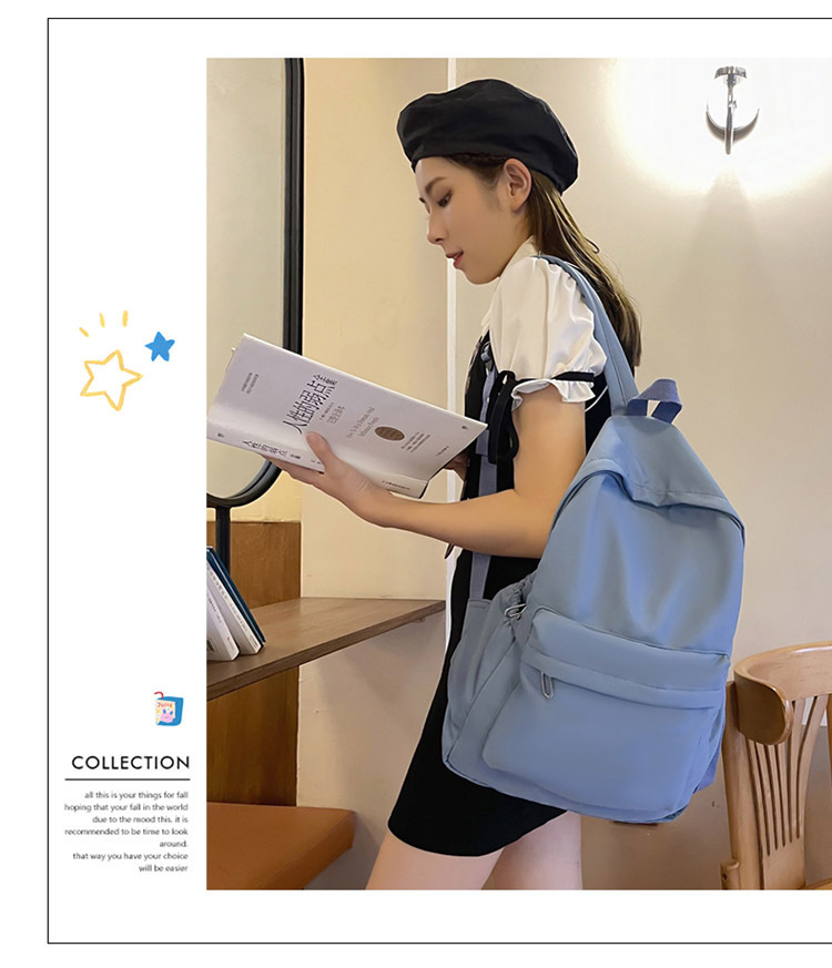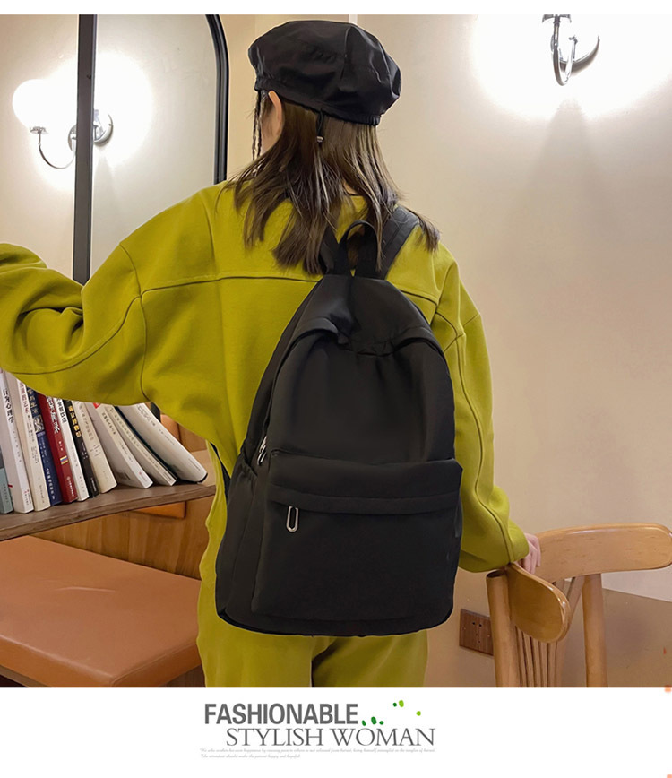 休闲大容量双肩包ins风时尚女生韩版纯色简约大学生书包出游背包