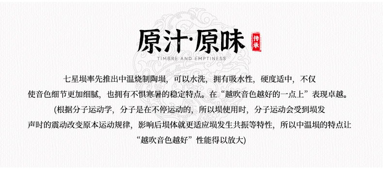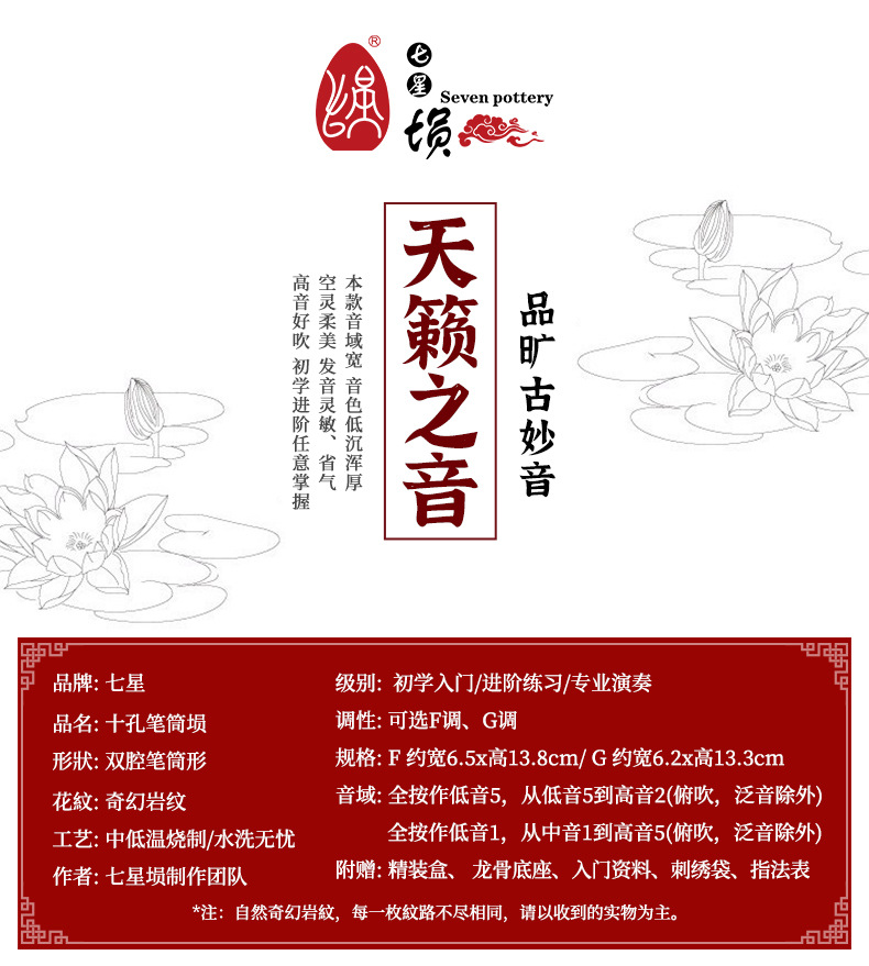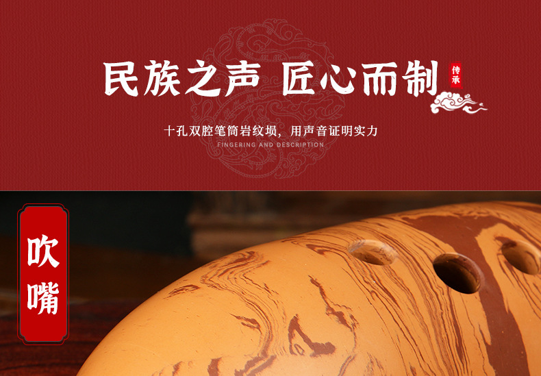七星埙十孔双腔笔筒岩纹学生初学者成人入门练习专业演奏民族乐器