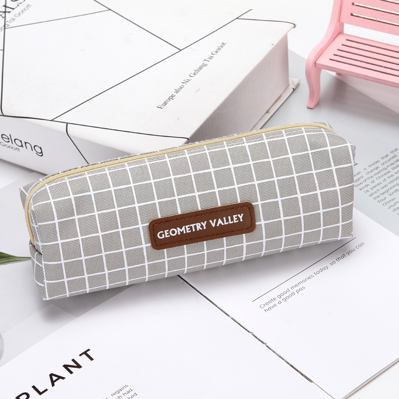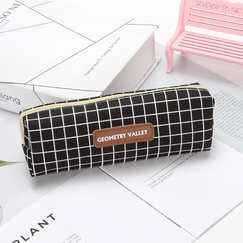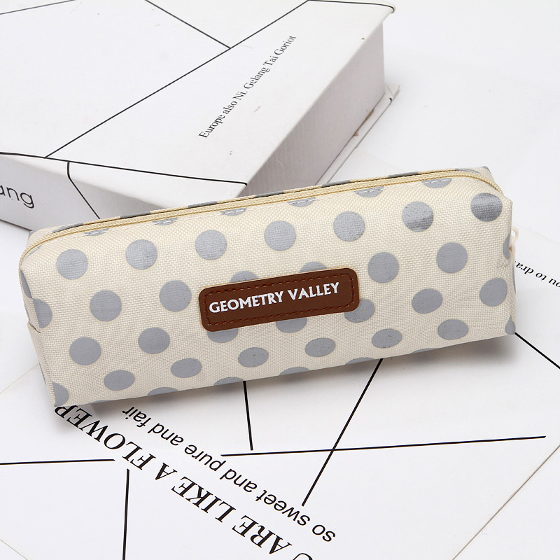 简约小清新波点笔袋 中小学生铅笔盒拉链帆布大容量文具袋批发