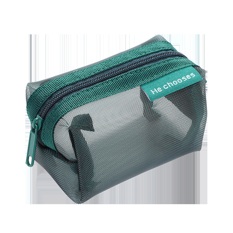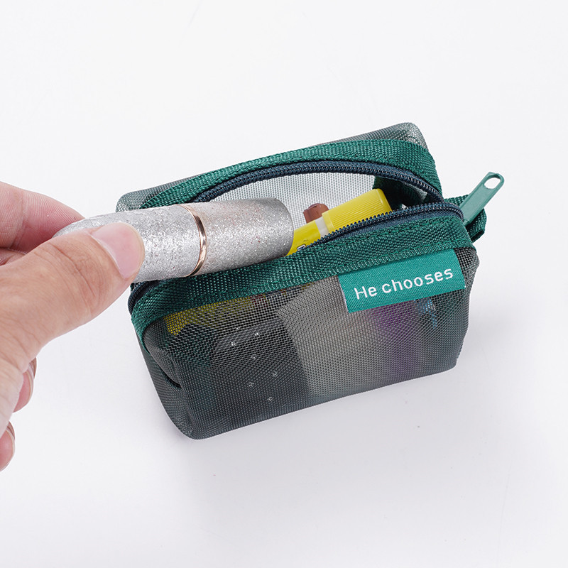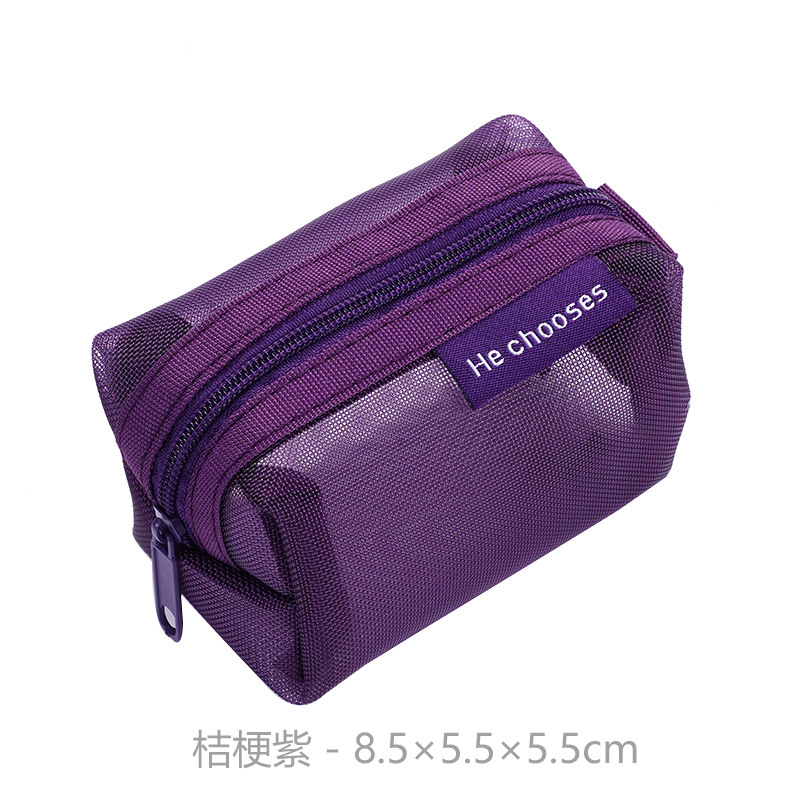 复古色立体方形网纱零钱包迷你钥匙包耳机包尼龙零钱袋透明收纳袋