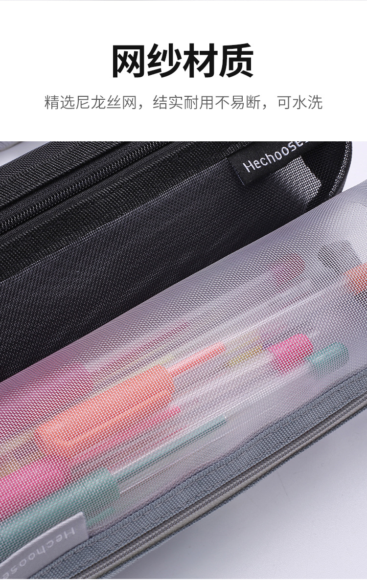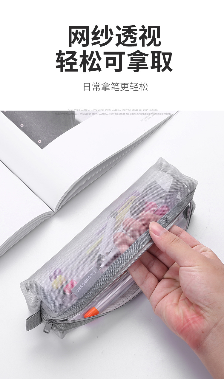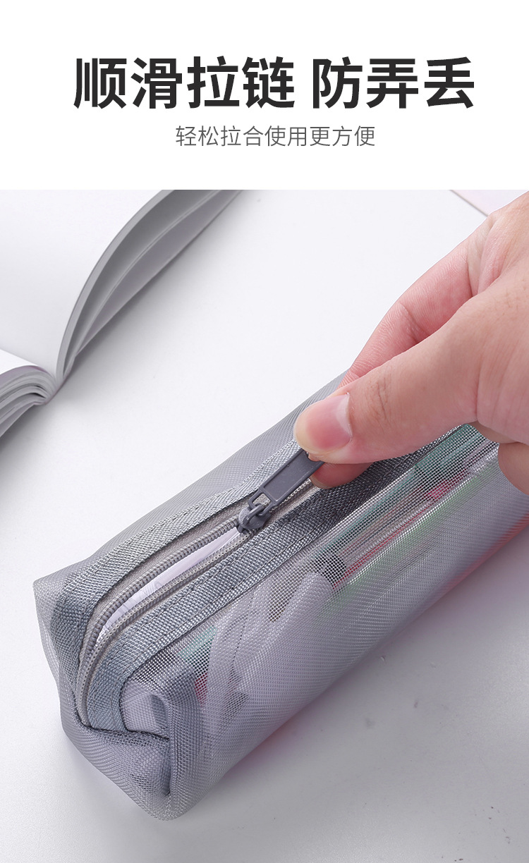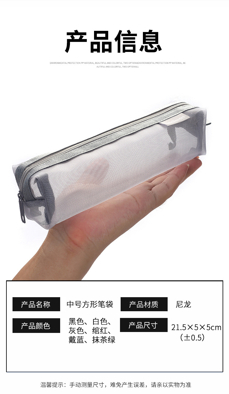 加厚方形简约透明网纱笔袋大容量铅笔盒学生考试文具袋收纳盒批发