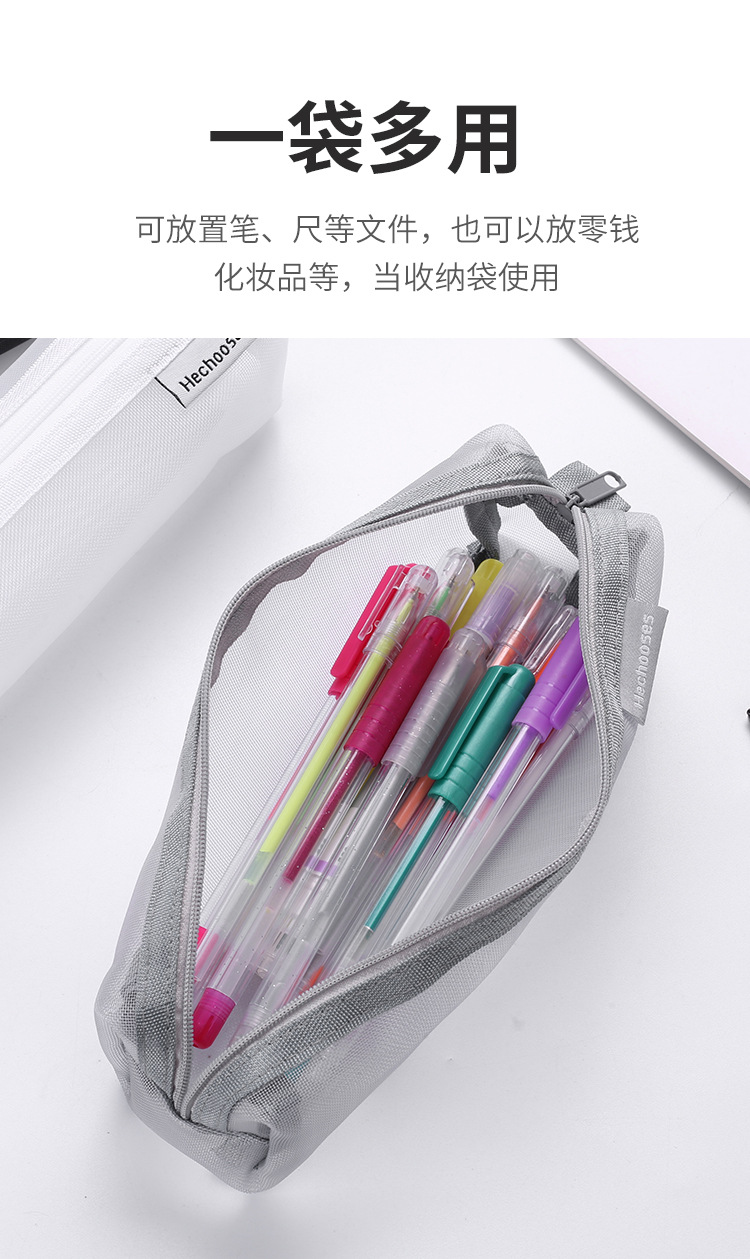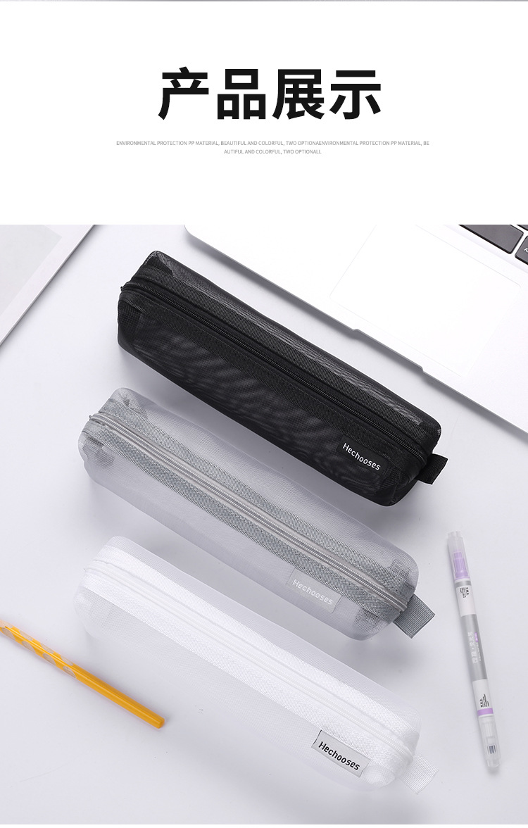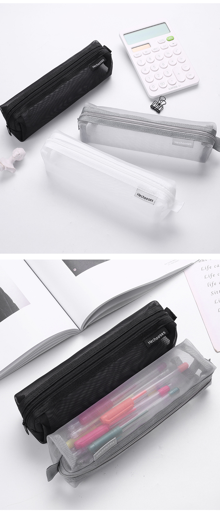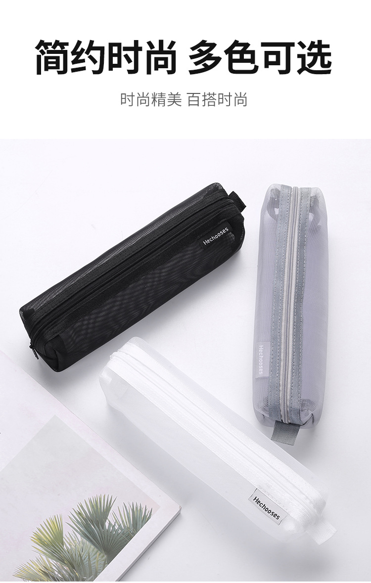 加厚方形简约透明网纱笔袋大容量铅笔盒学生考试文具袋收纳盒批发
