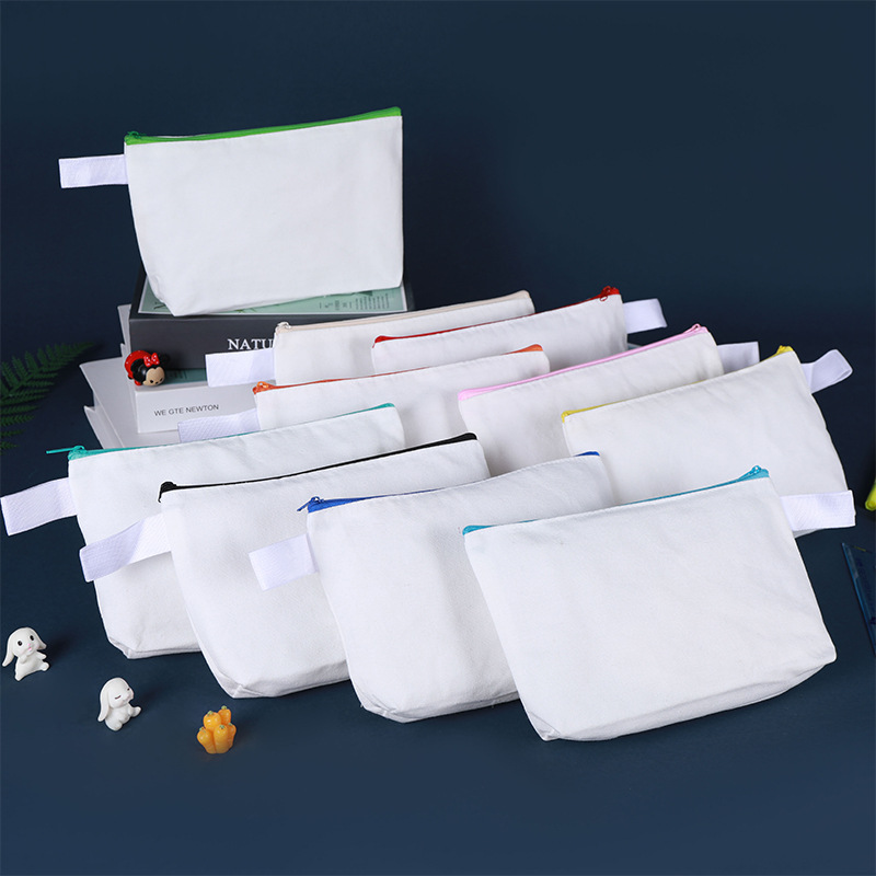 跨境亚马逊现货拉链帆布笔袋印制logo简约刺绣化妆包学生文具袋