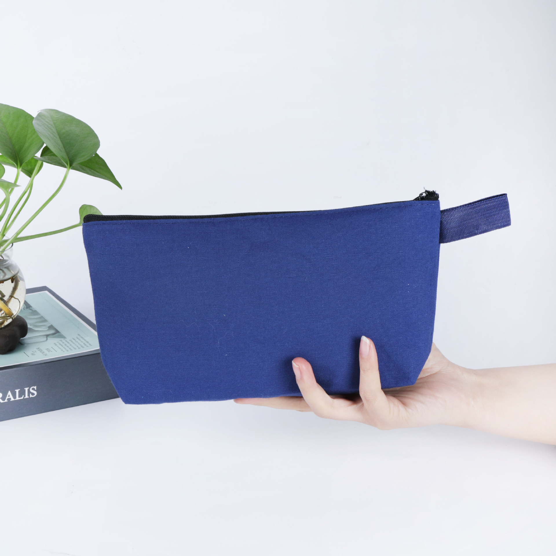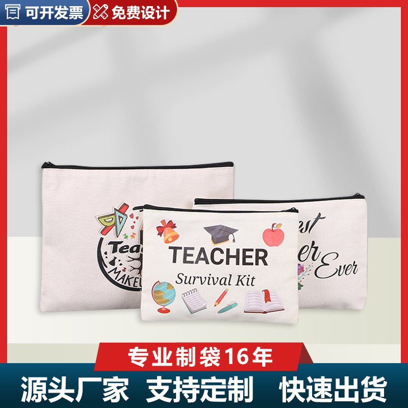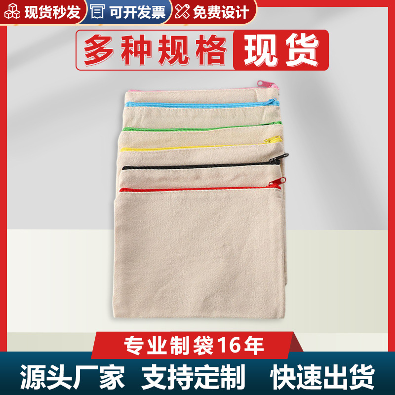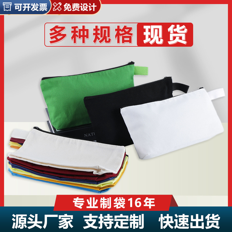 亚马逊现货拉链帆布笔袋多色空白可印刷logo手拿化妆包定文具袋制
